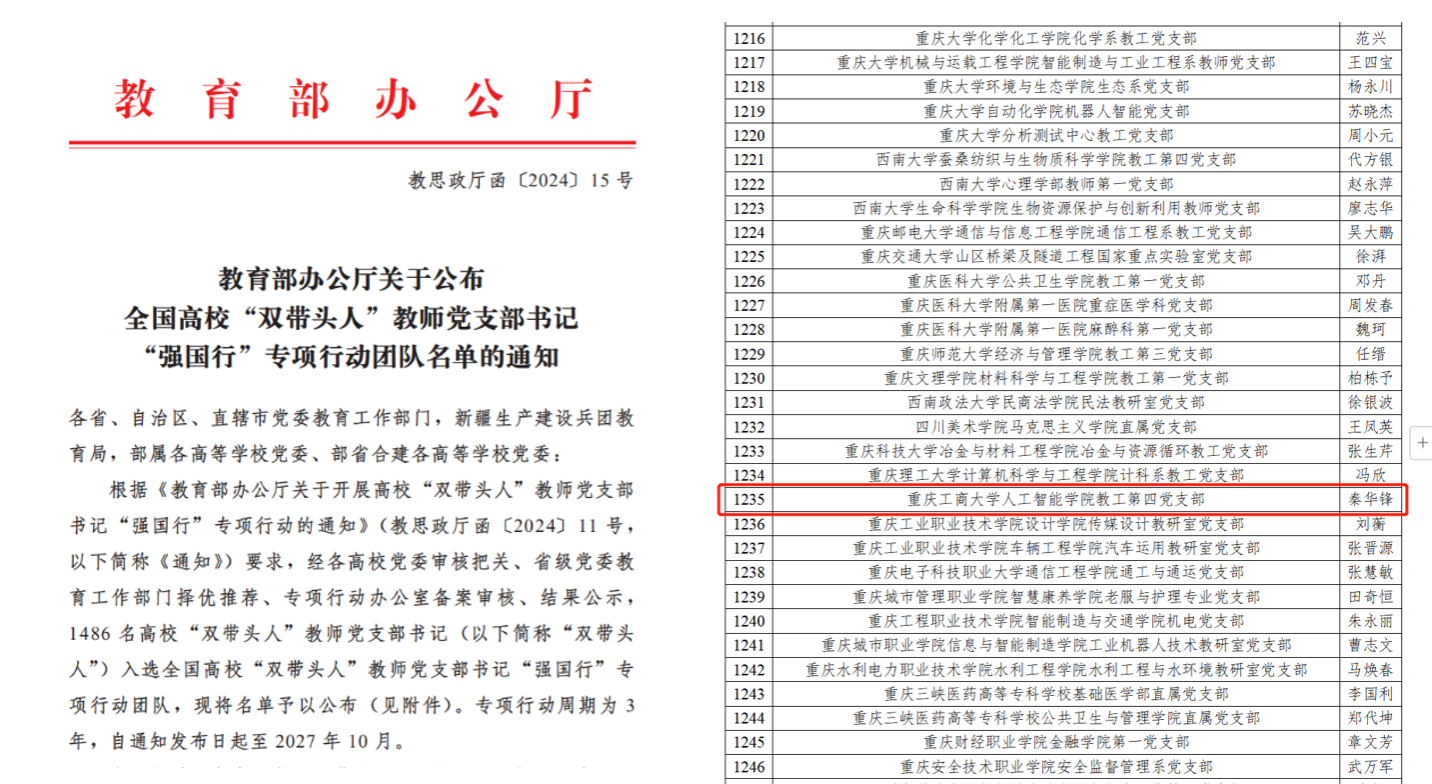 近日,教育部思政司印发了《关于公布全国高校“双带头人”教师党支部书记“强国行”专项行动团队名单的通知》,bat365官网国合基地党支部(人工智能学院教工第四党支部)入选。