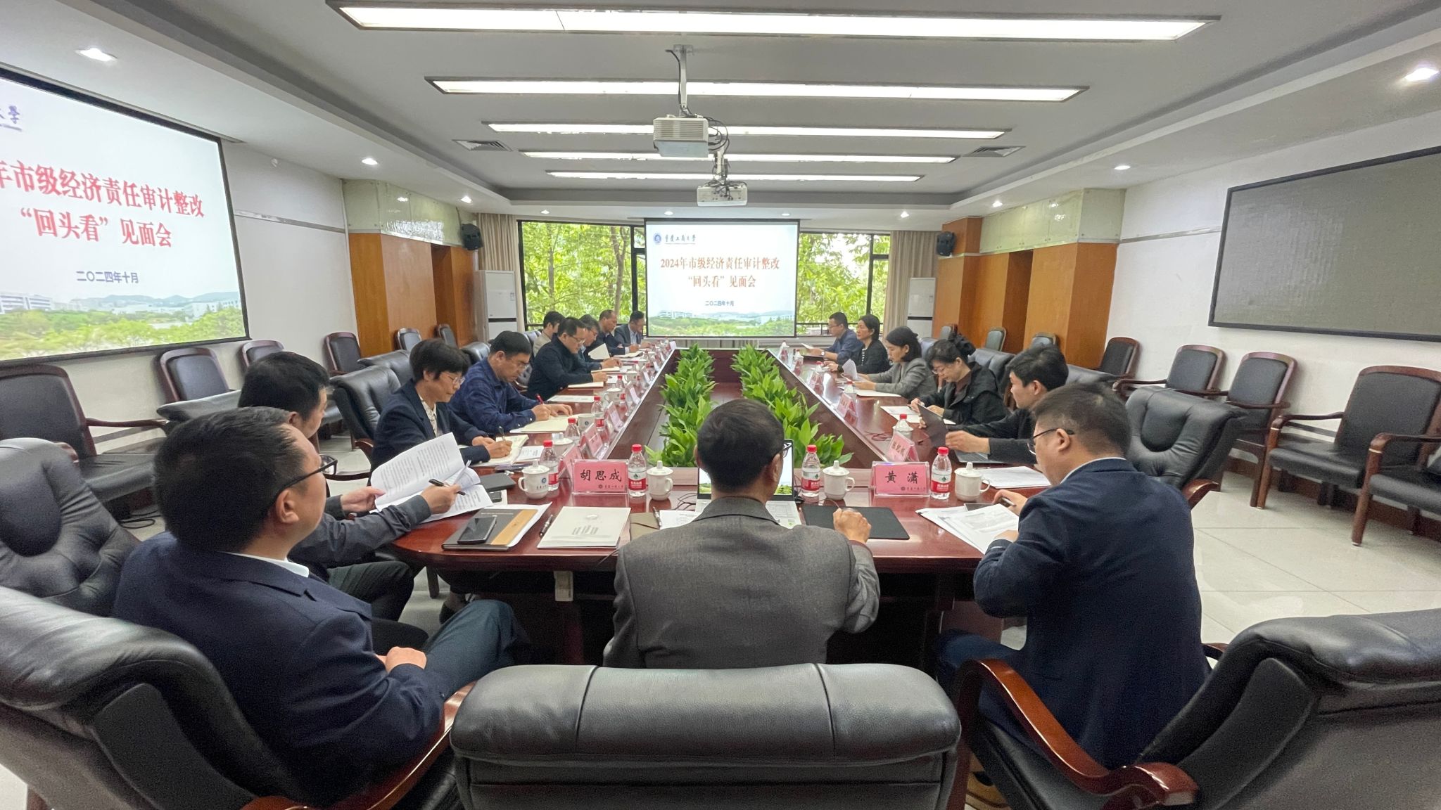 10月24日,重庆市经济责任审计工作联席会议办公室来bat365官网开展2023年校领导经责审计整改“回头看”。“回头看”工作组组长、市经责审计联席会办公室副主任田颖,工作组成员市人社局表彰奖励处三级调研员李瑞兰、市审计局三级调研员唐芳和一级主任科员陈纪帆、市财政局三级主任科员杨光,以及学校党政办、纪检监察室、组织部、人事处、教务处、科研处、后勤处、财务处、审计处、基建处、国际商学院、成渝地区双城经济圈建设研究院等相关部门负责人参加了“回头看”见面会,见面会由田颖主持。