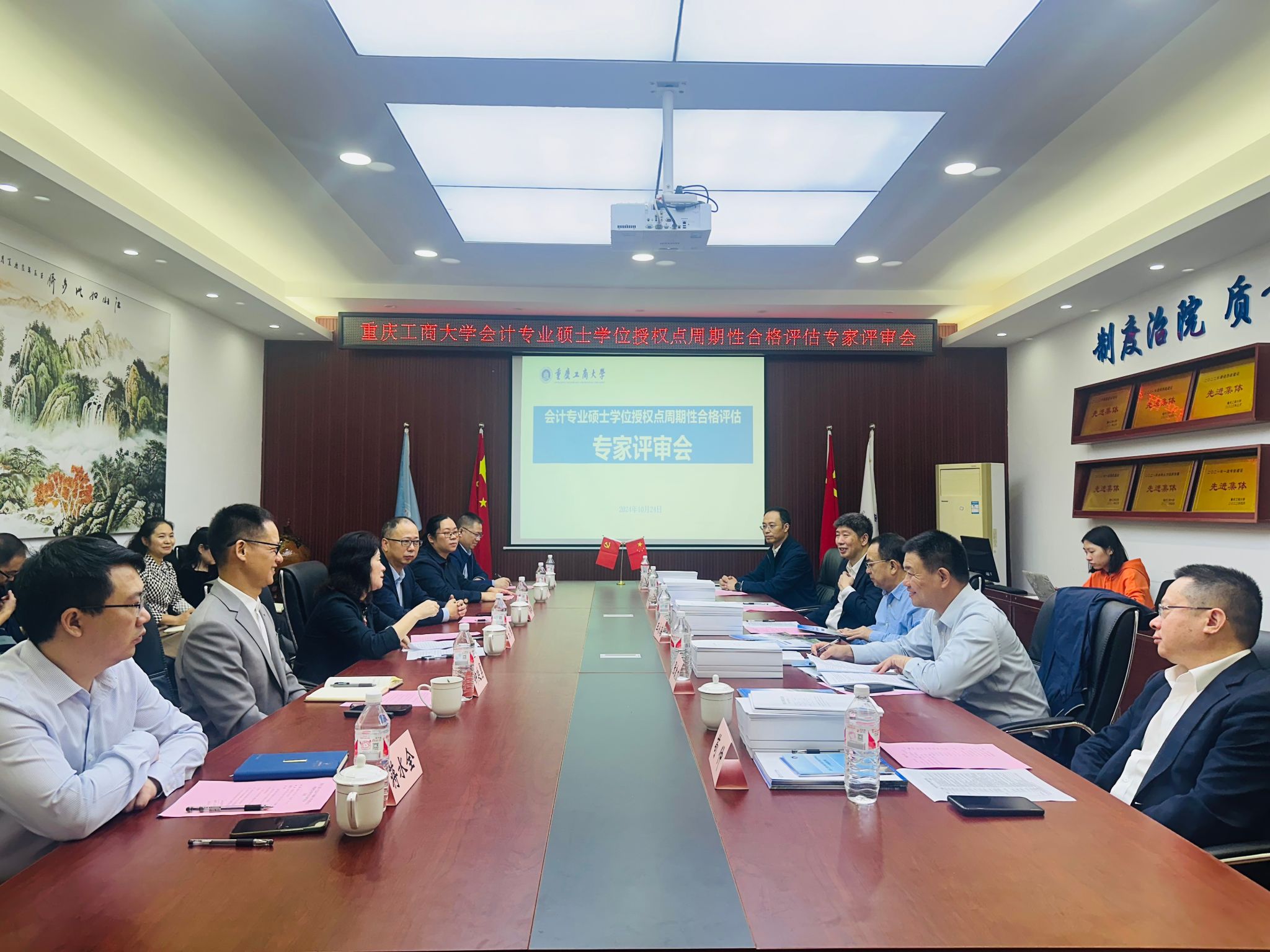 近日,会计专业硕士学位授权点周期性合格评估专家评审会在学校明德楼2019会议室召开。武汉大学王永海教授、中南财经政法大学张敦力教授、西安交通大学汪方军教授、中冶赛迪集团党委副书记苟仲、浪潮通用软件重庆公司总经理王宏波组成评估专家组,对会计专业硕士学位授权点近五年的建设情况进行评估。学校党委副书记宋豫,会计学院领导班子成员、各系部及办公室主任参加会议。会议由会计学院党委书记邓德敏主持。