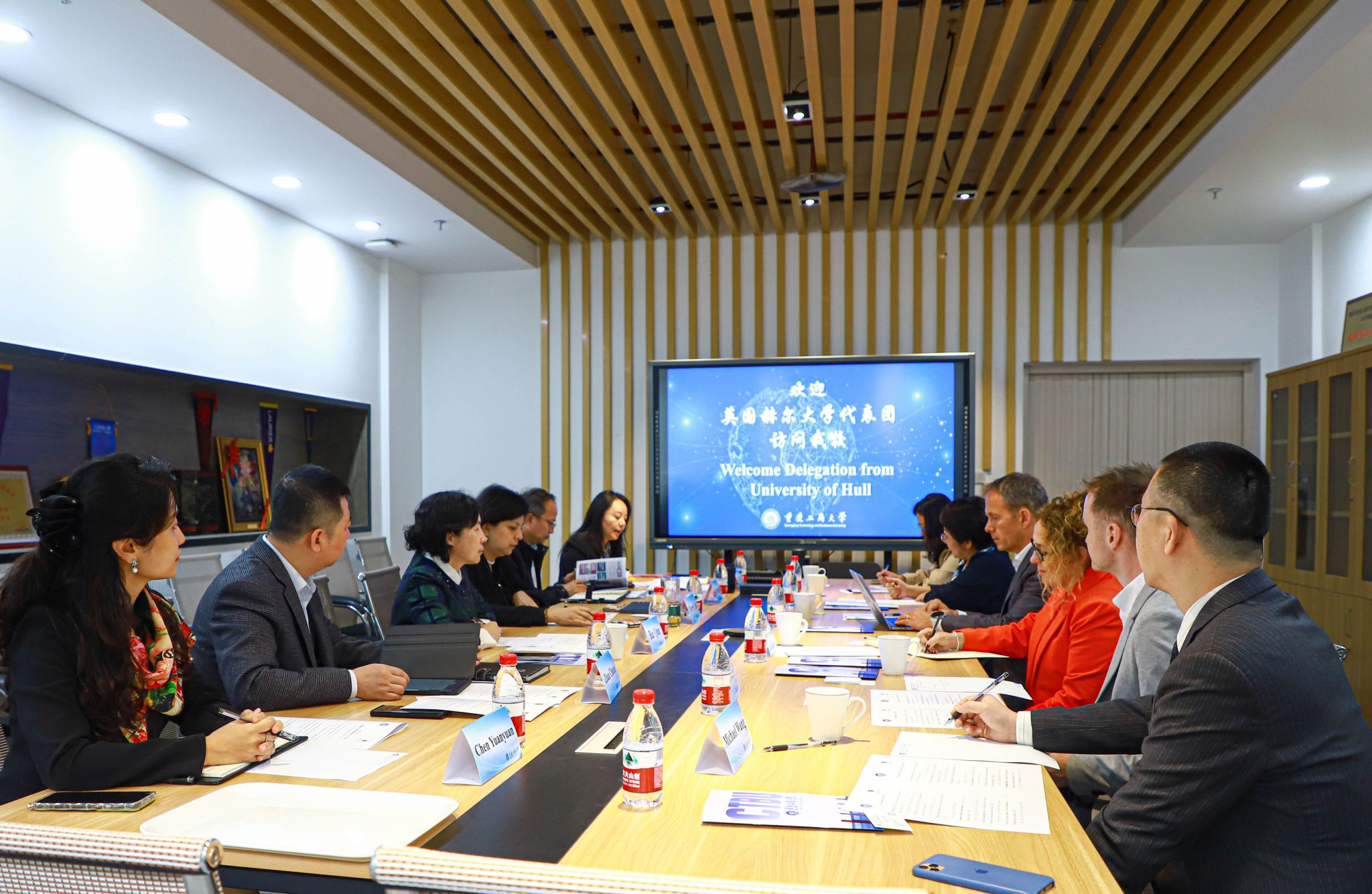 11月5日,英国赫尔大学商法政学院副院长Alison Price-Moir教授、商学院院长Peter Andrews教授,国际招生处主任Calum Porter先生以及该校中国办公室成员一行访问bat365官网。副校长柏群参加会谈并讲话,国际合作与交流处、国际商学院和法学与社会学学院负责人参加会谈。