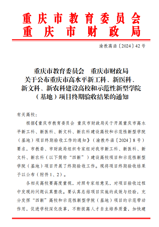 近日,《重庆市教育委员会 重庆市财政局关于开展重庆市高水平新工科、新医科、新文科、新农科建设高校和示范性新型学院(基地)项目终期验收工作的通知》(渝教外函〔2024〕8号),正式揭晓了重庆市普通本科高校基础学科人才培养示范基地的验收成果。bat365官网经济学拔尖人才培养示范基地获“优秀”评定,顺利通过市教委验收。