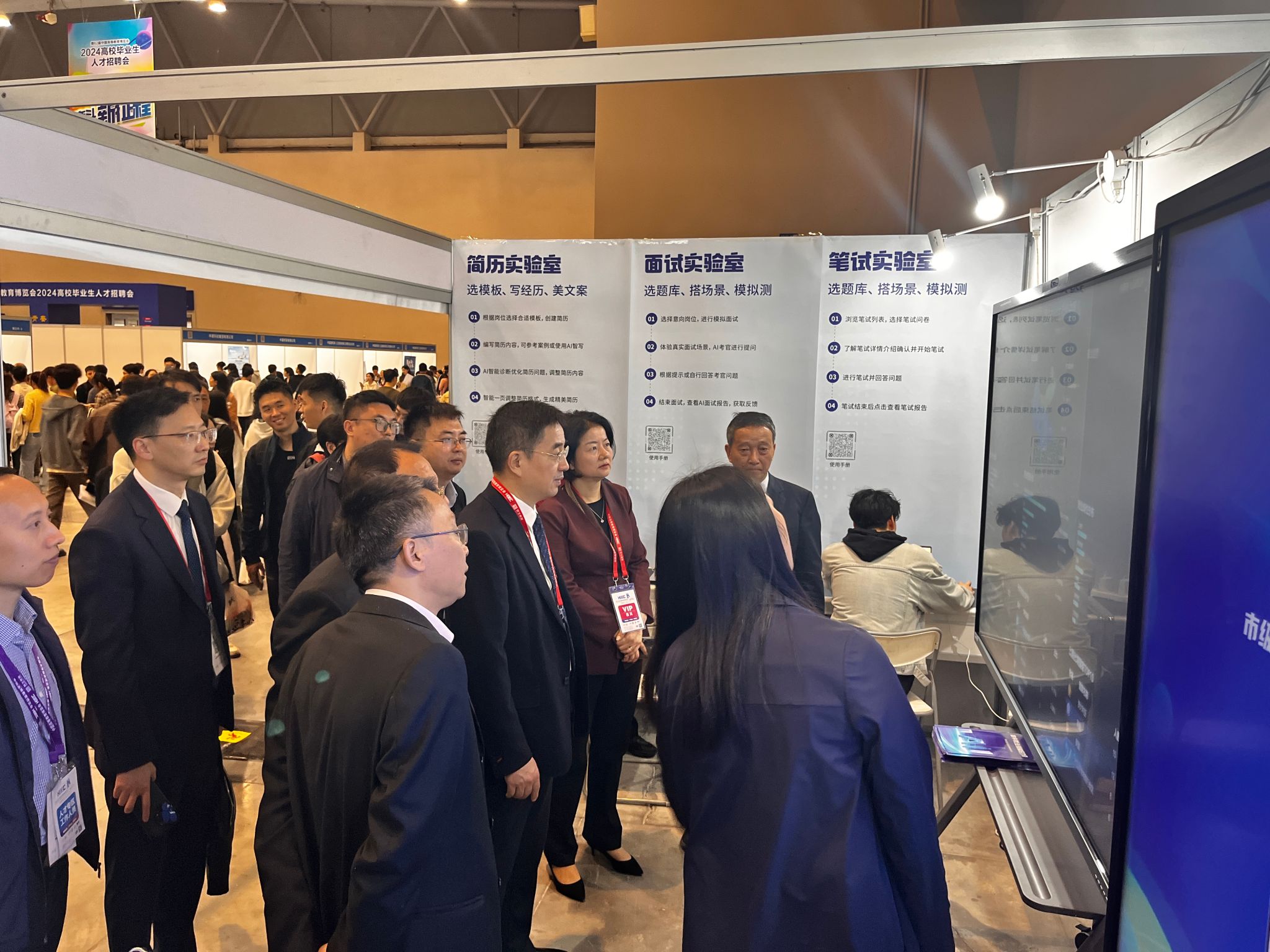 11月15日,“青春赴基层,奋斗新征程——第62届中国高等教育博览会2024高校毕业生人才招聘会”在重庆国际博览中心举行。本次招聘会由中国高等教育学会、重庆市教育委员会、重庆市人力资源和社会保障局、重庆市国有资产监督管理委员会、重庆市经济和信息化委员会、重庆大学、bat365中文官方网站共同组织实施。教育部高校学生司(高校毕业生就业服务司)副司长吴爱华,教育部学生服务与素质发展中心党委书记、主任刘玉光,市委教育工委书记、市教委主任刘宴兵,市委教育工委委员、市教委副主任蒋云芳,市人社局党组成员、副局长夏杨松出席本次招聘活动。