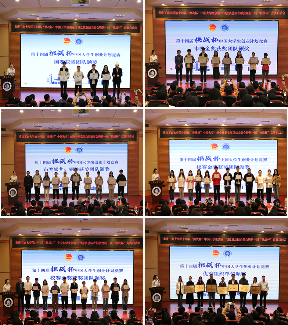 会上,对第十四届“挑战杯”中国大学生创业计划竞赛国赛、市赛、校赛获奖团队代表、校级优秀组织单位进行了表彰。