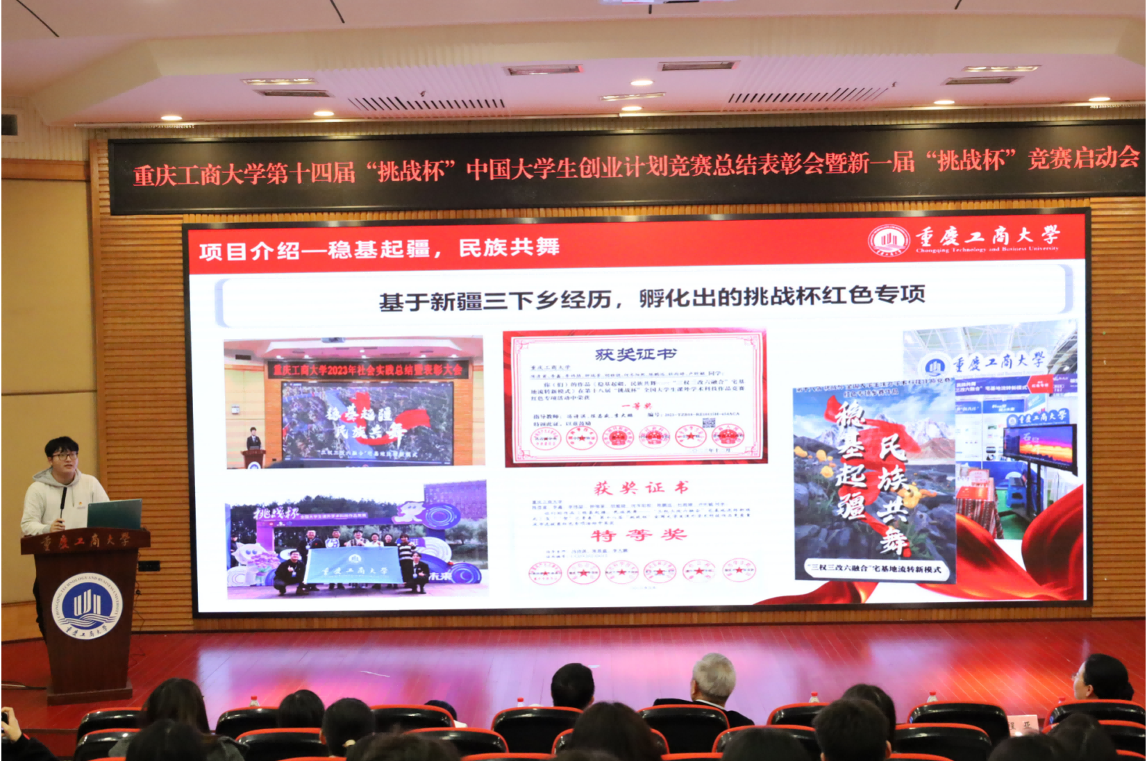 11月15日,bat365官网在博智楼7200学术报告厅举办第十四届“挑战杯”中国大学生创业计划竞赛总结表彰会暨第十九届“挑战杯”全国大学生课外学术科技作品竞赛参赛动员会。党委常委、副校长李国军,党委学工部、学生处处长申卫东,教务处副处长韦晓兰,科研处处长田双全,党委研究生工作部、研究生院副院长曾胜,校团委书记吴佑波、副书记王微,工商管理学院党委副书记程亚,人工智能学院党委副书记张未,挑战杯国赛获奖项目指导老师、环境与资源学院教授贺有周,各学院团委负责人以及近300名师生代表出席活动。