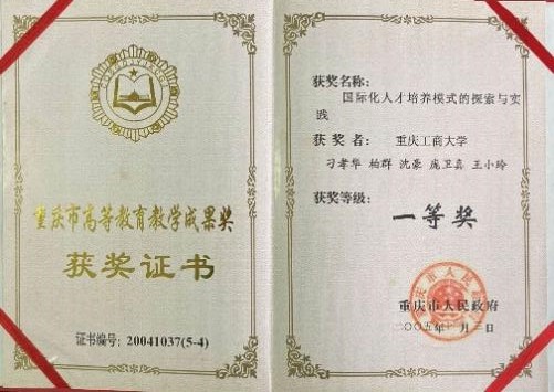 学院《国际化人才培养模式的探索与实践》荣获重庆市高等教育教学成果一等奖