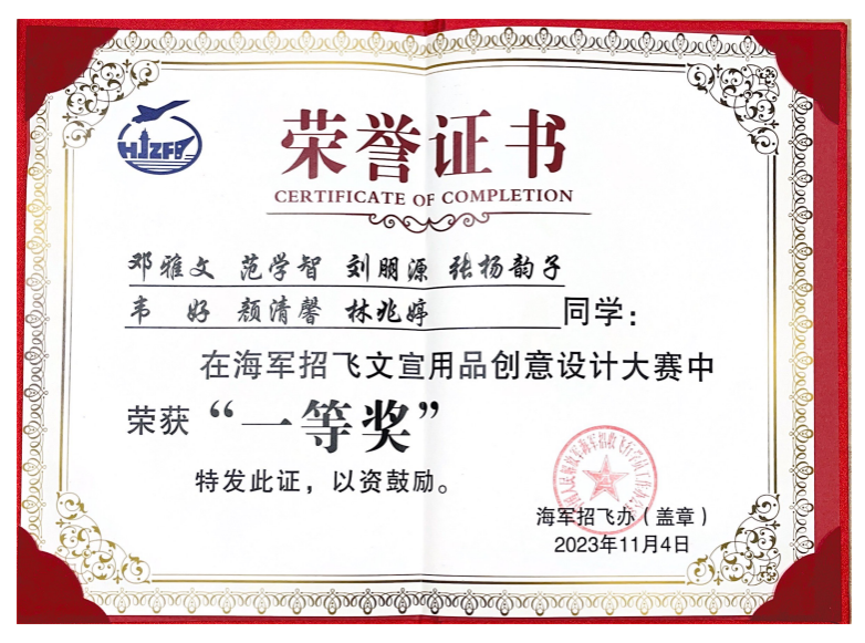 学院大学生实习实践基地学生团队获海军招飞文宣用品创意设计大赛一等奖