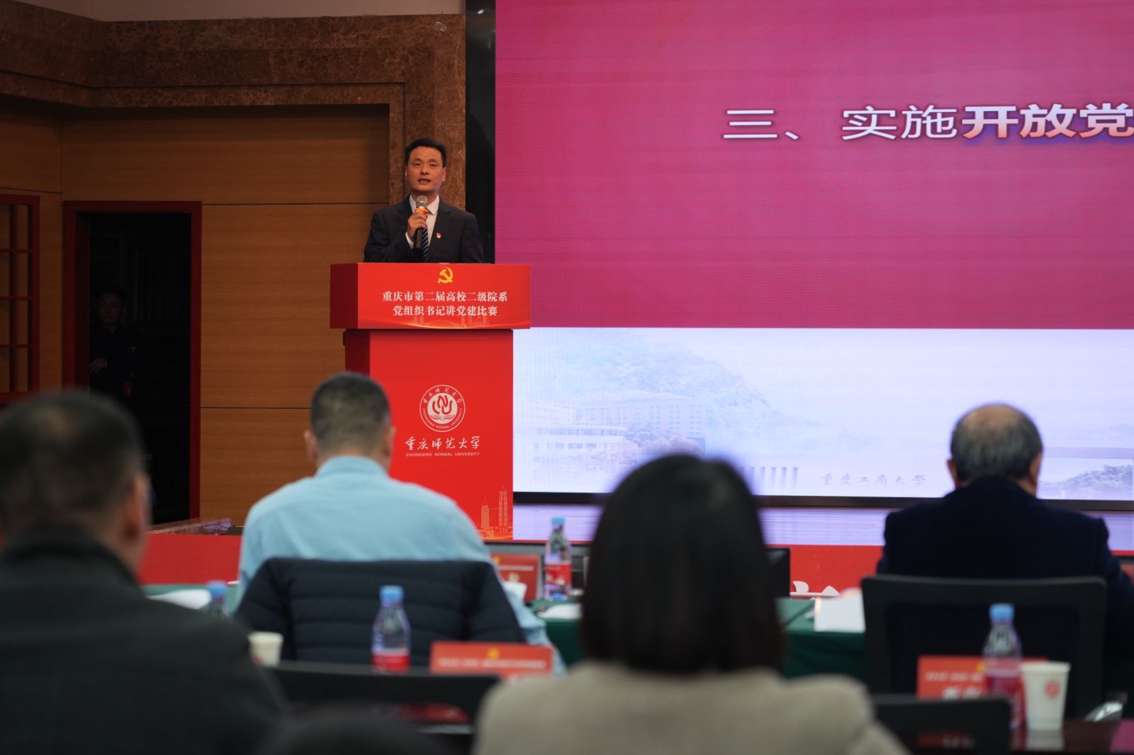 11月22日,由市委教育工委主办的重庆市第二届高校二级院系党组织书记讲党建比赛在重庆师范大学举行。学校党委组织部相关人员、二级学院党组织书记代表等现场观摩了比赛。