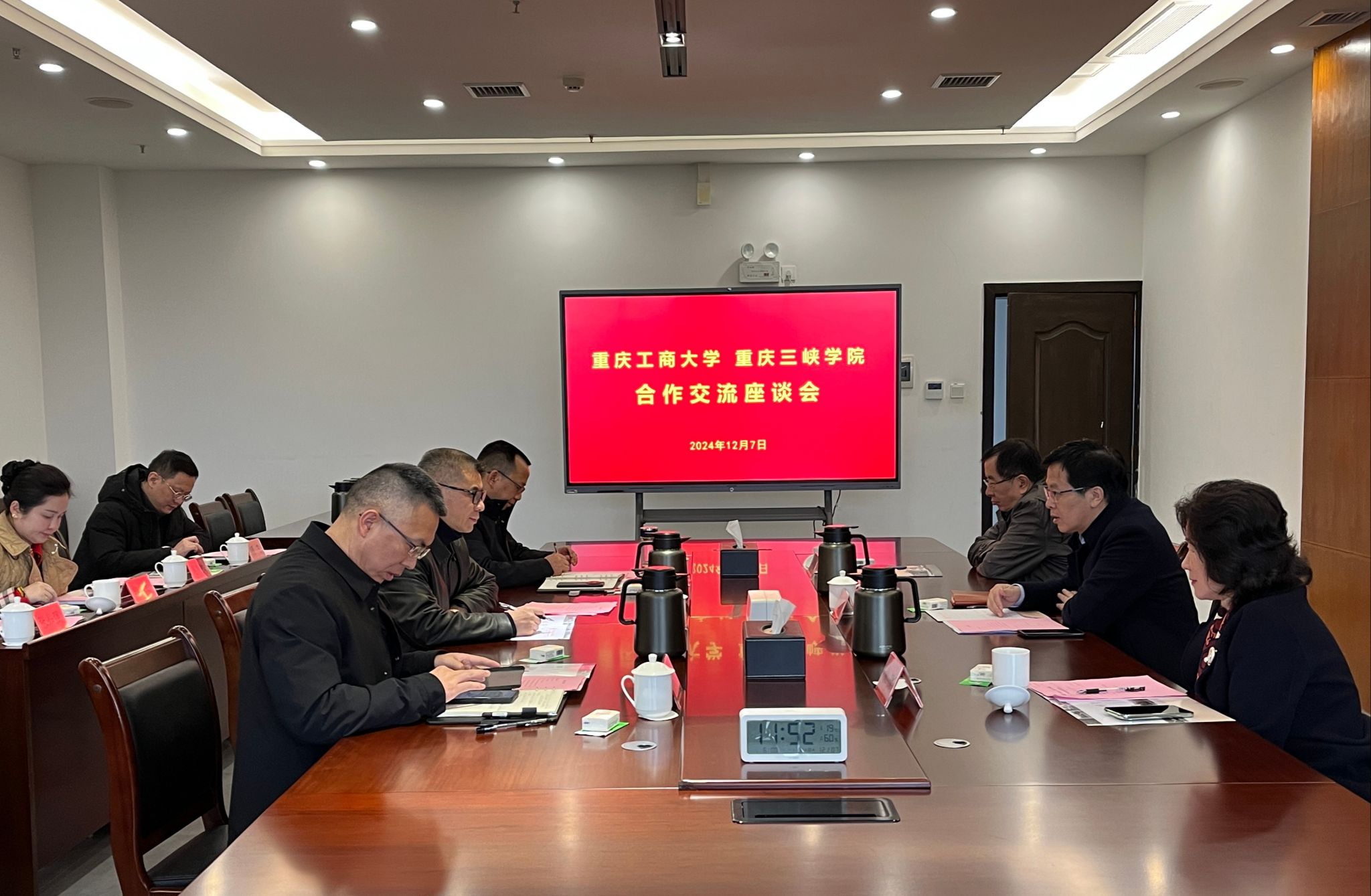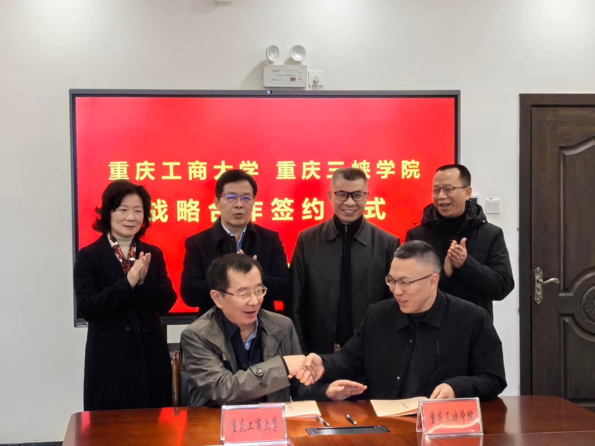 近日,学校党委书记曾维伦,党委副书记宋豫,党委常委、副校长赵骅带领党政办公室、国内合作发展处(校友工作办公室)等部门的负责同志赴重庆三峡学院商洽交流合作事宜并签订两校战略合作协议。重庆三峡学院党委副书记、校长李敬,党委常委、副校长郭作飞、王良伟出席会议,该校党政办公室、教务处、科研处等相关部门的负责同志参会。会议由郭作飞主持。
