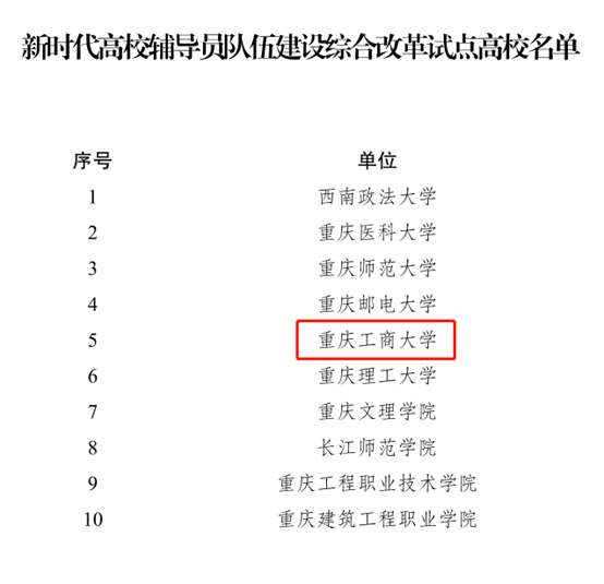 近日,中共重庆市委教育工委公布了新时代高校辅导员队伍建设综合改革试点高校名单,全市共有10所高校入选,其中本科院校8所、高职院校2所。bat365官网位列其中。