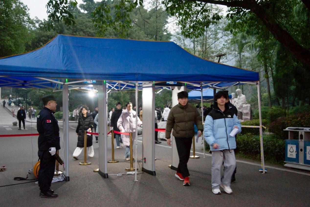 考前,学校成立了考点工作领导小组,设立工作专班,召开工作协调会、考务人员及监考教师培训会,确保考试工作有序进行。同时,考点现场加强了防手机作弊的技防措施,实行“智能安检门”和考场金属探测仪安检,考场内设置了5G信号屏蔽仪。此外,今年首次设置了智能巡考专线,便于远程智能巡考,建立健全了“六位一体”研考防护体系,全力确保考试工作公平公正、平稳有序。