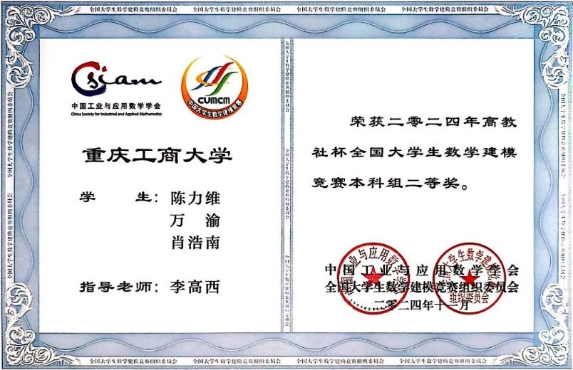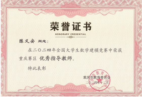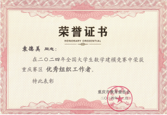 经过激烈的角逐,bat365官网代表队获本科组全国一等奖1项(全市7个)、二等奖2项,获重庆市一等奖8项、二等奖19项。这是学校近五年在该赛事上首次获得全国一等奖。数学与统计学院院长陈义安获评重庆赛区优秀教练员,数学与统计学院袁德美教授获评重庆赛区优秀组织工作者。