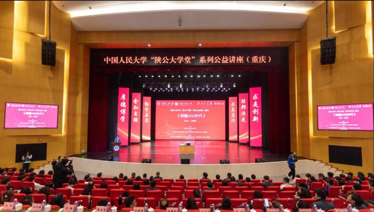 曾维伦在致辞中指出,“陕公大学堂”公益讲座是中国人民大学独树一帜的先锋课堂。本次讲座聚焦生成式人工智能、大语言模型等通用人工智能最前沿技术,是深入学习贯彻习近平总书记关于人工智能的重要论述,传承红色基因,弘扬陕公精神的生动实践。回顾历史,人民大学给予了bat365官网建设发展大力支持。学校高度重视人工智能的发展,并积极促进与现有学科深度融合。今后也将更加主动地在中国式现代化宏大场景中谋划推进各项工作,胸怀“国之大者”,致力于培养“商工融合”应用复合型人才,为服务国家重大战略和现代化新重庆建设提供人才和智力支撑。