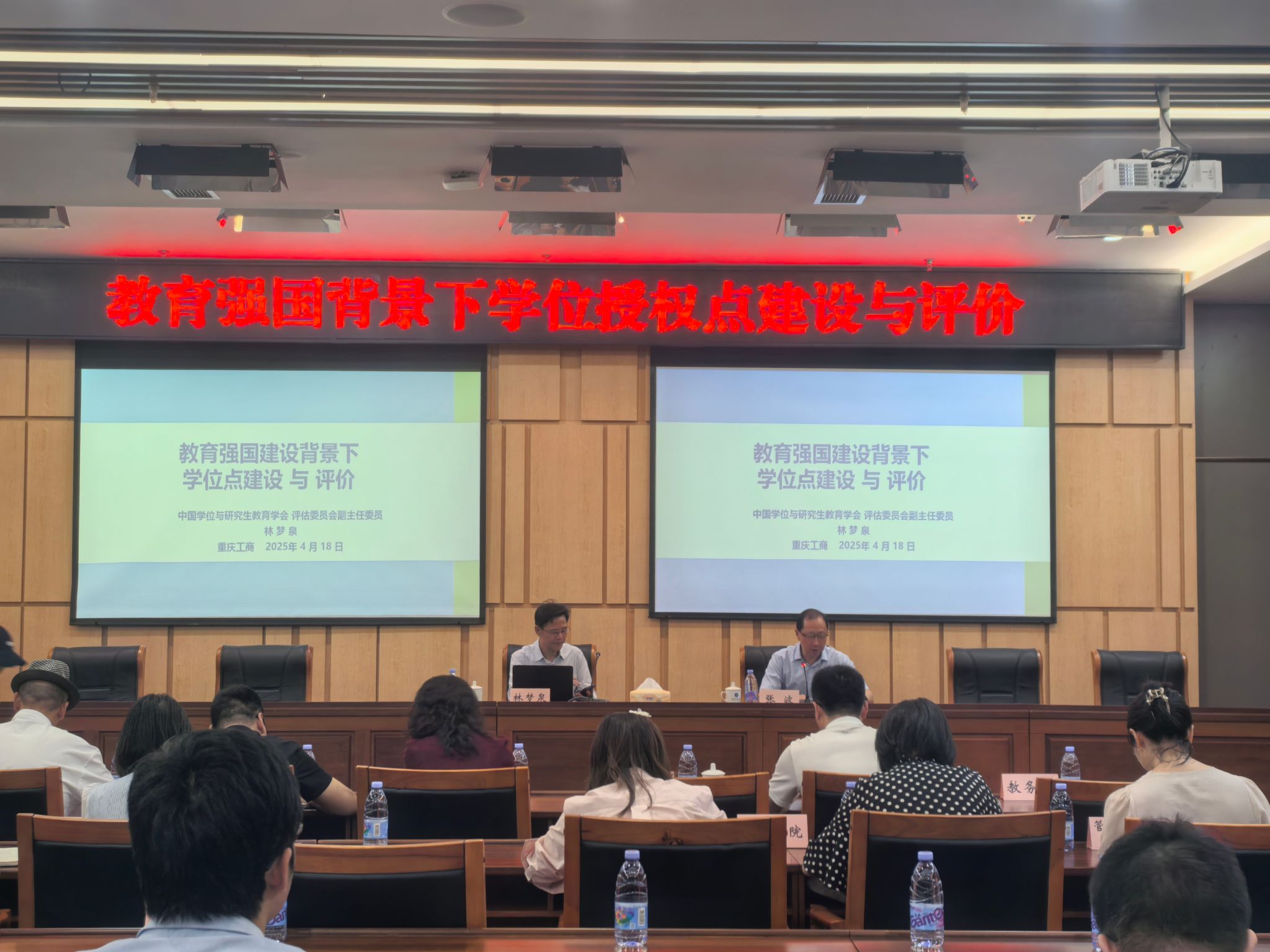 4月18日,中国学位与研究生教育学会评估委员会副主任委员、教育部学位与研究生教育发展中心原副主任林梦泉到校开展学位点建设专题讲座。讲座在图书馆一会议室举行,学校党委常委、副校长张波主持,发展规划处(学科建设办公室)、人事处、教务处、科研处、研究生院等职能部门负责人,各研究生培养单位负责人、学位点负责人等参加了讲座。