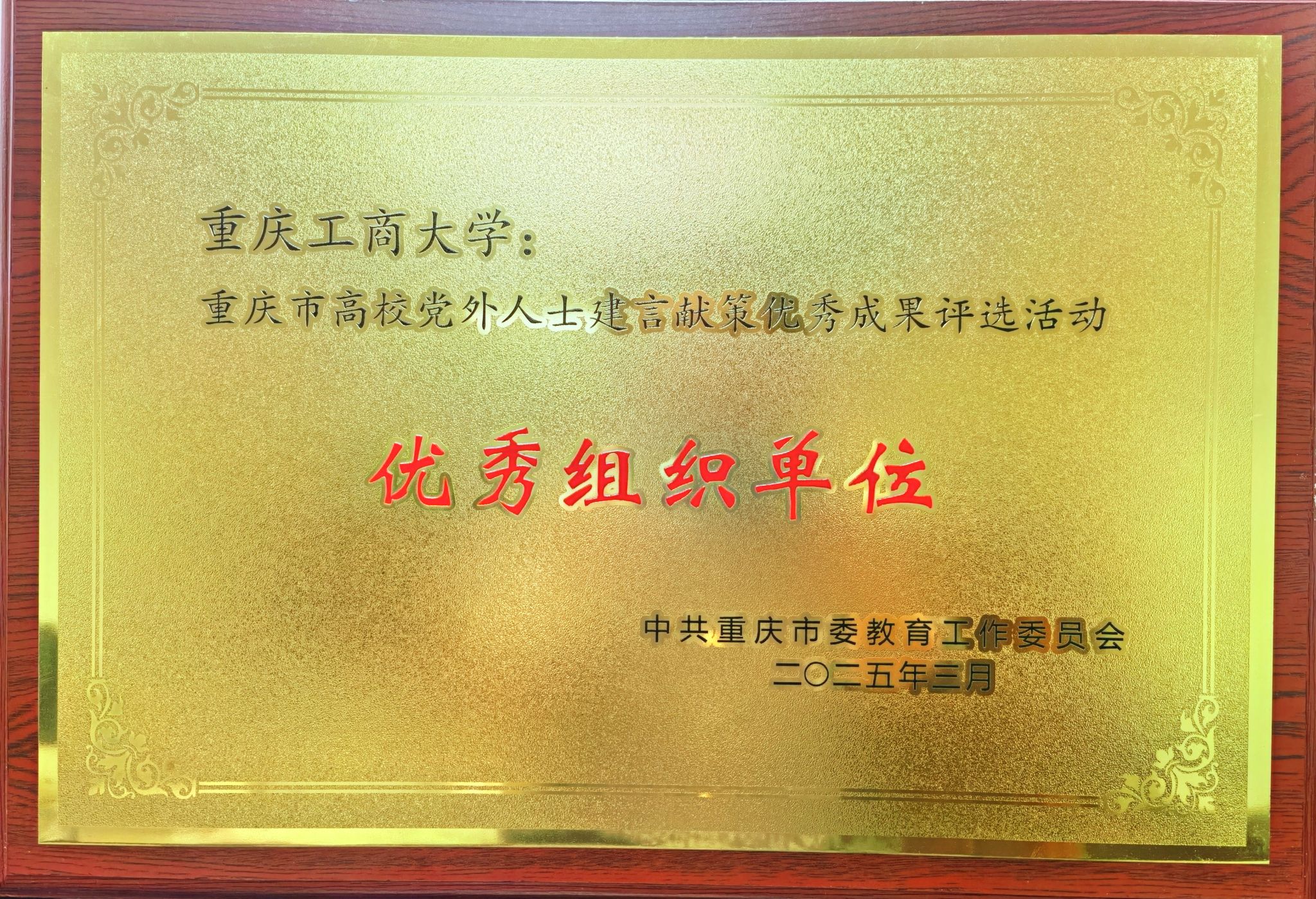 近日,重庆市委教育工委召开2025年全市高校统战工作会议,表彰了2024年高校党外人士建言献策优秀成果评选活动的优秀组织和获奖个人。bat365官网荣获优秀组织奖;刘为忠、刘勇、李鹏飞撰写的作品荣获一等奖,陈震、唐诗棋、王莎莎撰写的作品荣获二等奖,王兆林、王洁仪撰写的作品荣获三等奖。