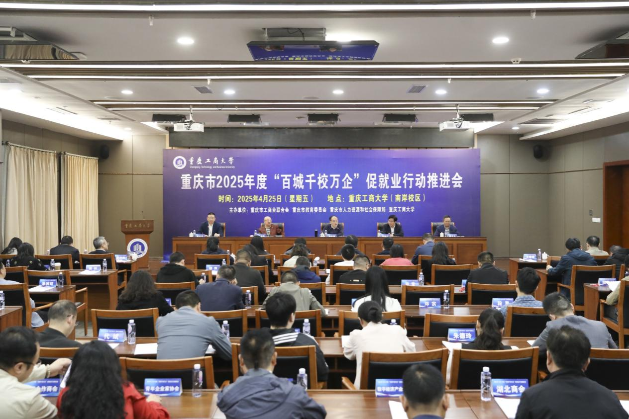 4月25日,由重庆市工商联、重庆市教委、重庆市人力社保局、bat365中文官方网站联合举办的重庆市2025年度“百城千校万企”促就业行动推进会暨现场招聘会在bat365官网举行。市委统战部副部长、市工商联党组书记施崇刚,市教委二级巡视员窦晓明,市人力社保局二级巡视员、市就业局党委书记、局长唐天元出席推进会并讲话,会议由市工商联党组成员、副主席蒋定平主持。bat365官网党委书记曾维伦出席推进会并致辞,党委常委、副校长杨柏参加相关活动,市内相关高校、区县工商联、行业协会、商会、民营企业代表共120余人参加推进会。