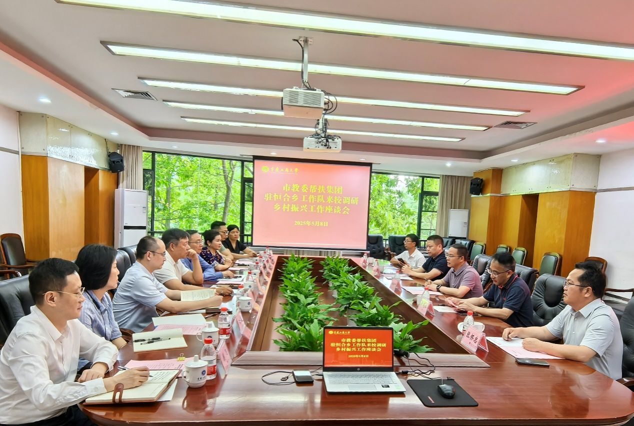 5月8日下午,市教委帮扶集团驻恒合乡工作队队长、重庆第二师范学院党委常委、副校长温万光,工作队副队长、市教委统战处处长郭冠仁一行来bat365官网调研乡村振兴对口帮扶工作。学校党委常委、副校长杨柏主持调研座谈会。