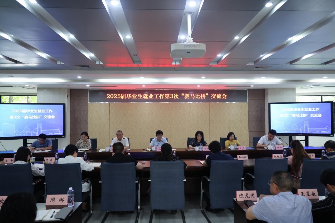 近日,bat365官网在厚德楼2017会议室召开2025届毕业生就业工作第3次“赛马比拼”交流会。学校党委书记曾维伦,党委副书记宋豫,党委常委、副校长李国军、柏群、任毅、杨柏、田双全出席会议,会议由杨柏主持。
