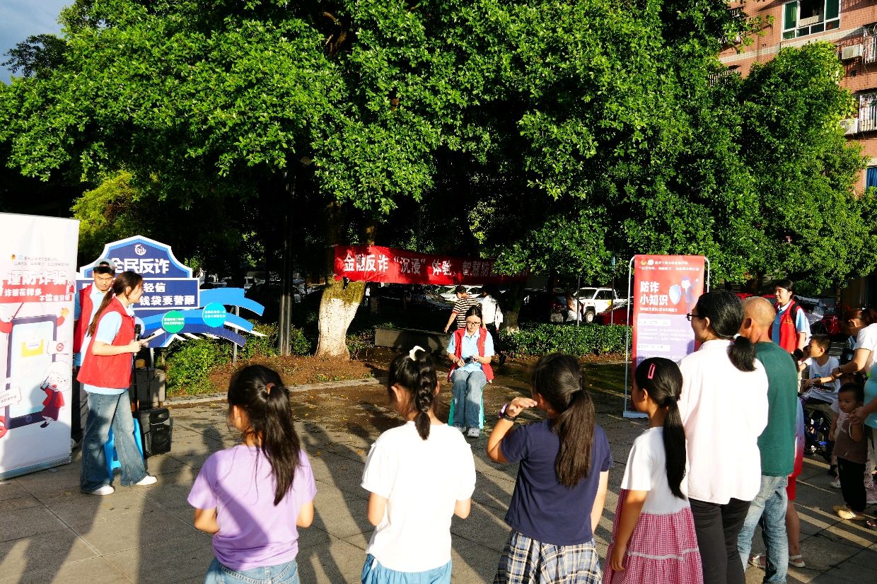 7月9日,金融学院“红岩先锋,‘津’融聚力”社会服务践行团在重庆市江津区白沙镇社区广场开展“金融反诈沉浸体验,智慧防骗守好钱袋”主题活动,通过情景演绎、知识问答、经历分享等形式,为居民带来一堂生动的防诈骗课。