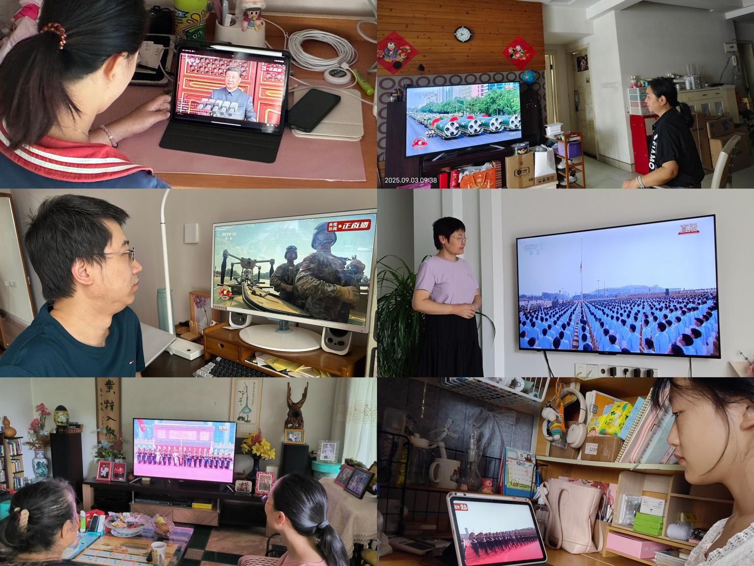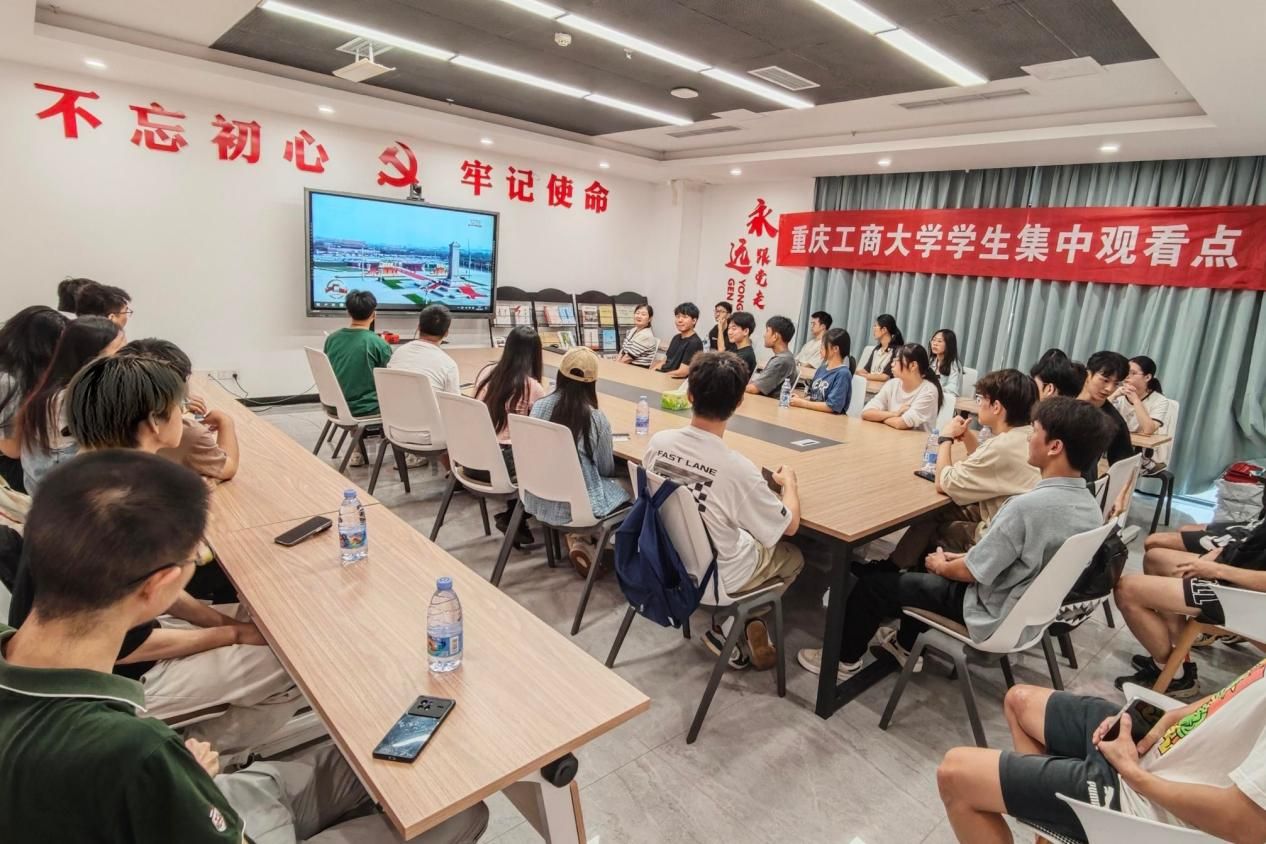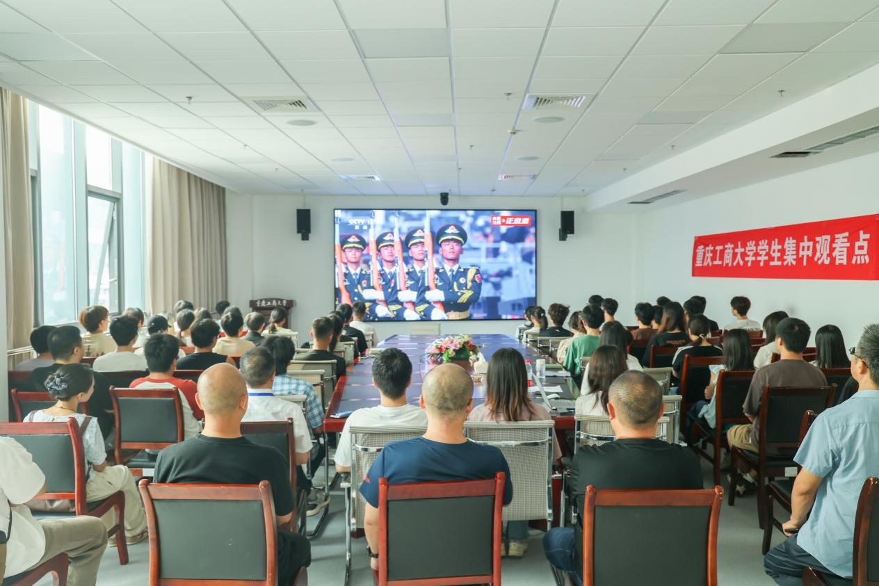 在观看直播现场,师生们聚精会神、热情高涨,不时响起热烈的掌声。大家倍感振奋,纷纷表示要铭记历史,在实践中传承弘扬伟大抗战精神,担负好时代责任和历史使命,踔厉奋发、勇毅前行,为全面建设社会主义现代化国家、全面推进中华民族伟大复兴而团结奋斗。