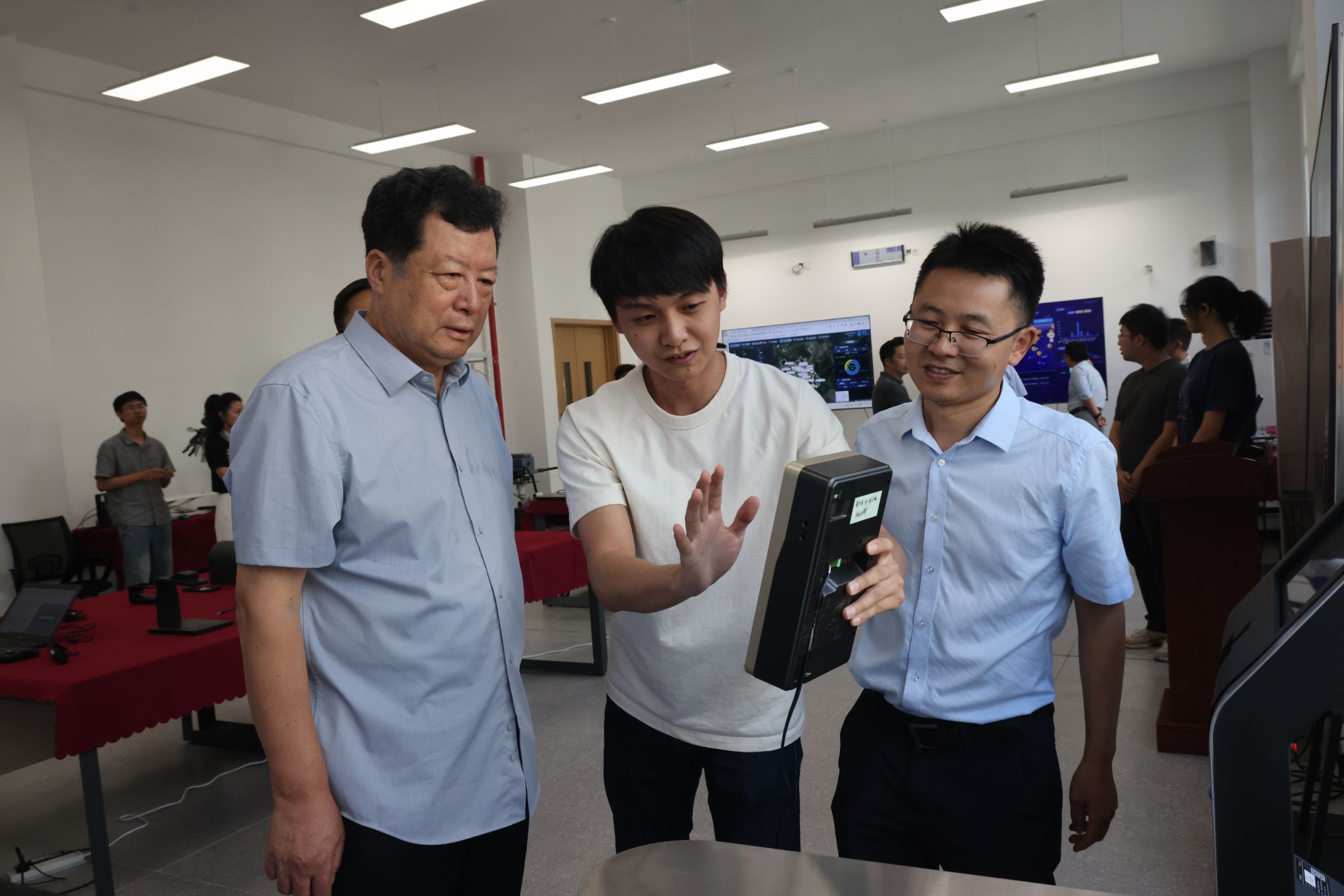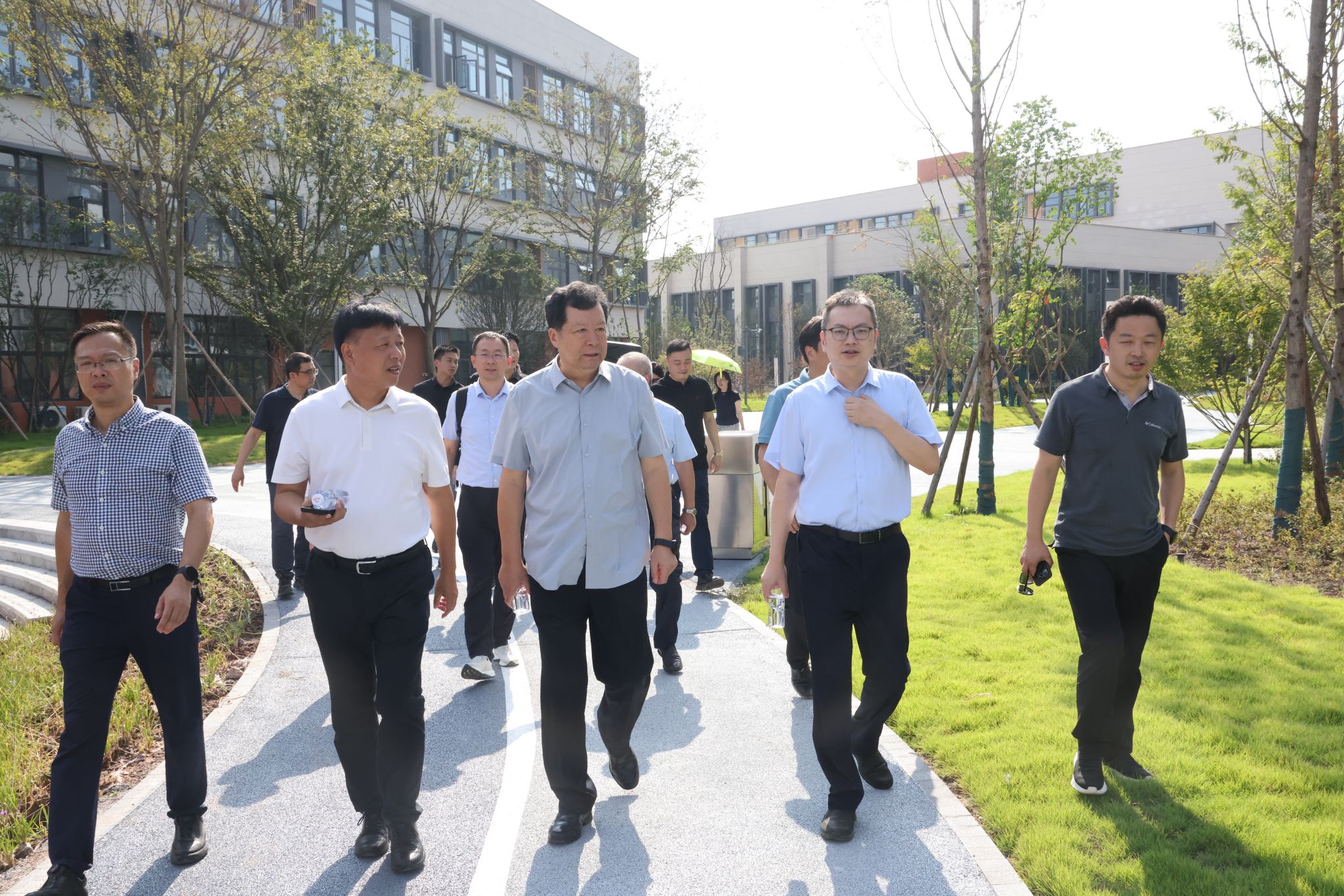 7日下午,温涛、杨柏陪同蒋庄德院士等专家一行参观茶园校区,深入了解国家智能制造服务国际科技合作基地、废油资源化技术与装备教育部工程研究中心科研平台的建设情况,专家学者对茶园校区教学科研条件表示充分肯定。
