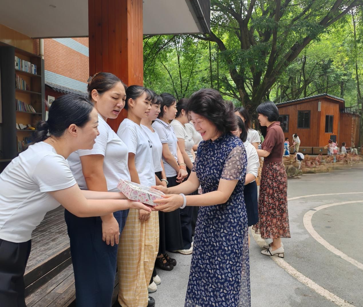慰问期间,宋豫与教师们亲切交谈,详细询问大家的日常工作与生活状况,她动情地说,“幼儿教师是孩子们启蒙路上的‘引路人’,也是孩子们在园所的‘守护者’,你们用耐心、爱心和责任心,陪伴孩子们度过成长中最珍贵的时光,学校深知大家的辛苦,也由衷感谢你们的默默付出。”随后,宋豫代表学校向幼儿园全体教职工赠送了精心准备的节日慰问品,老师们脸上洋溢着幸福的笑容,感受到了来自工会的温暖与关怀。