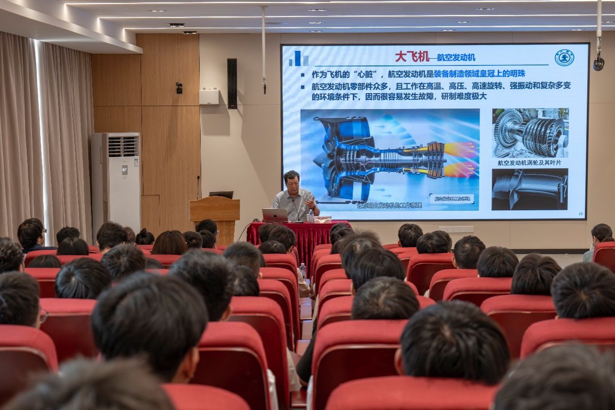 蒋院士以《大国智造》为主题,围绕背景意义、智能制造、智能感知、精密仪器、工业母机五个维度,阐述了推动全球制造业高质量发展的必要性、重要地位与作用以及战略布局。在讲座过程中,蒋院士借助鲜活的案例进行生动讲解,使师生们了解到全球制造业的发展现状、我国制造业发展的概况、智能制造的发展趋势,以及人工智能赋能制造业高质量发展的情况。从大飞机、机器人到微纳制造技术催生的微齿轮、微制动器、微电机、微卫星,再到碳纳米管绳梯、可穿戴超声成像系统、基因检测分子诊断仪器等上百个典型的真实科研与应用案例,蒋院士以“胸怀大局、无私奉献、弘扬传统、艰苦创业”的西迁精神激励同学们勇于创新,并教导研究生同学“科技兴则民族兴,科技强则国家强。科技创新永无止境,要在传承中创新,在融合中发展”。蒋院士讲解深入浅出,为研究生新生搭建了“商工融合”的跨学科学习与交流平台,赢得了在场师生的热烈掌声。