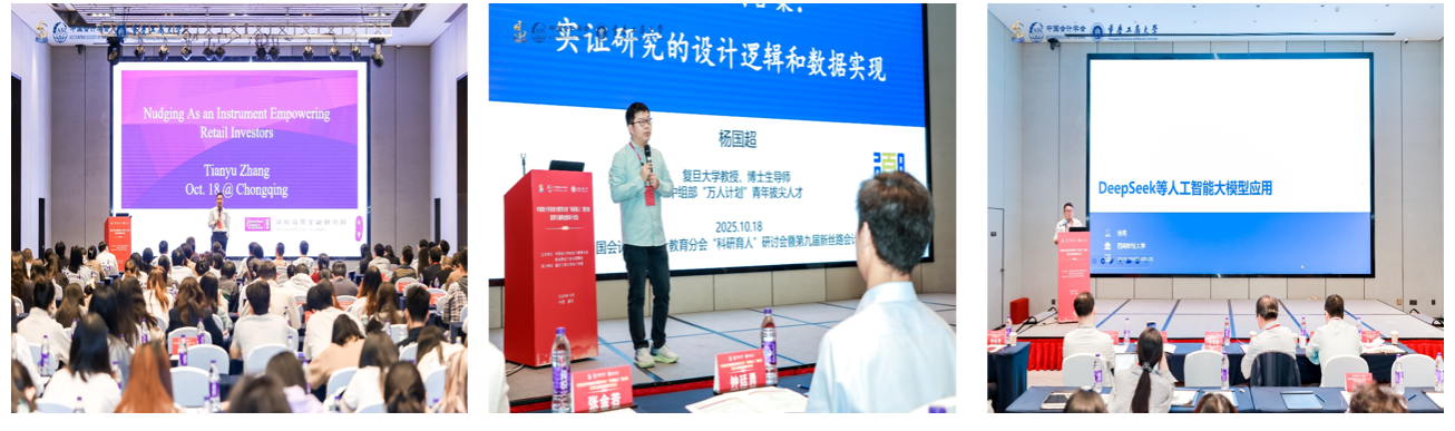 随后,在主题报告环节,香港中文大学(深圳)讲席教授、西南财经大学会计学院学术院长张田余教授、复旦大学杨国超教授、西南财经大学徐亮教授分别以《Nudging as an Instrument to Empower Retail Investor》《从问题到答案:实证研究的设计逻辑和数据实现》《大模型与智能体技术及在企业风险控制中应用》为题做了主题报告。西南大学杜勇教授、西北工业大学陈琳教授、四川大学李子扬教授分别做了串讲报告。主题报告和串讲报告分别由广东外语外贸大学王艳教授、bat365中文官方网站蒋水全教授、重庆大学刘斌教授主持。
