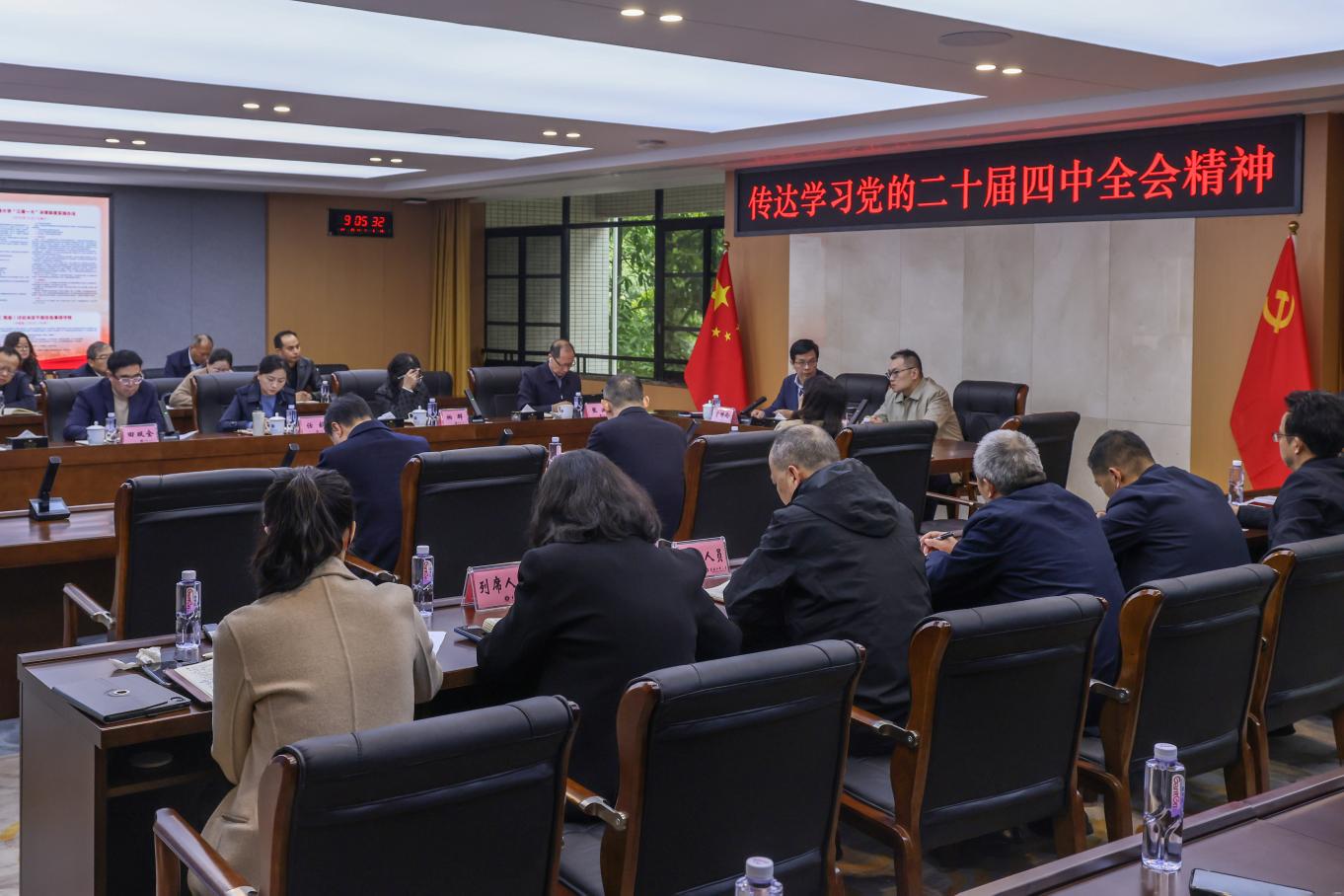 11月4日上午,bat365官网在厚德楼3019会议室认真组织、传达学习党的二十届四中全会精神。学校党委书记曾维伦主持会议并讲话。全体在家校领导,党委常委,相关部门负责人及二级党委(党总支)书记参加会议。