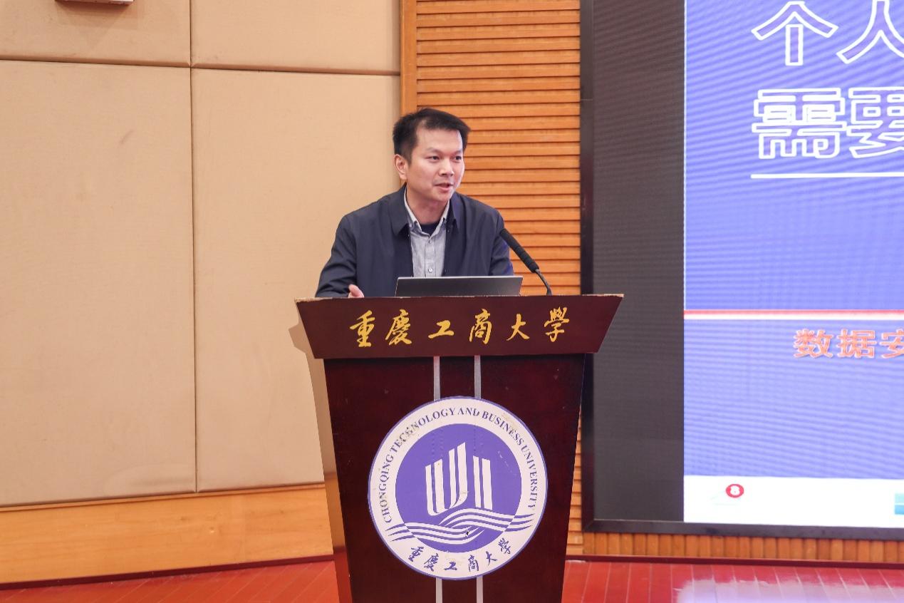 第二阶段为专家培训环节。西南大学信息化建设办公室副主任夏大飞以《数据安全与AI赋能管理服务》为题作专题报告。他结合多个真实案例,强调数据分类管理、加密技术及权限控制等措施的重要性。并分享了AI技术在高校管理中的实践应用。