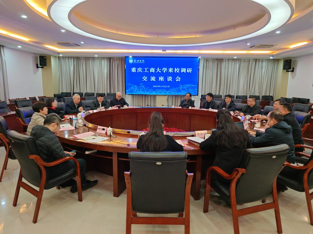 随后,柏群一行赴滁州学院交流。滁州学院党委书记周旭、副校长曾献功及相关职能部门、学院负责人陪同考察。座谈会上,滁州学院相关负责人介绍了办学定位、学科建设、师资队伍培养等经验。双方就人才队伍建设、科研协同创新、国际交流合作等内容展开对口工作交流,各部门负责人分别与滁州学院相关部门深入探讨具体合作路径。柏群一行还参观了滁州学院安徽省实景地理环境重点实验室,学习其在实践教学与产教融合方面的先进做法。