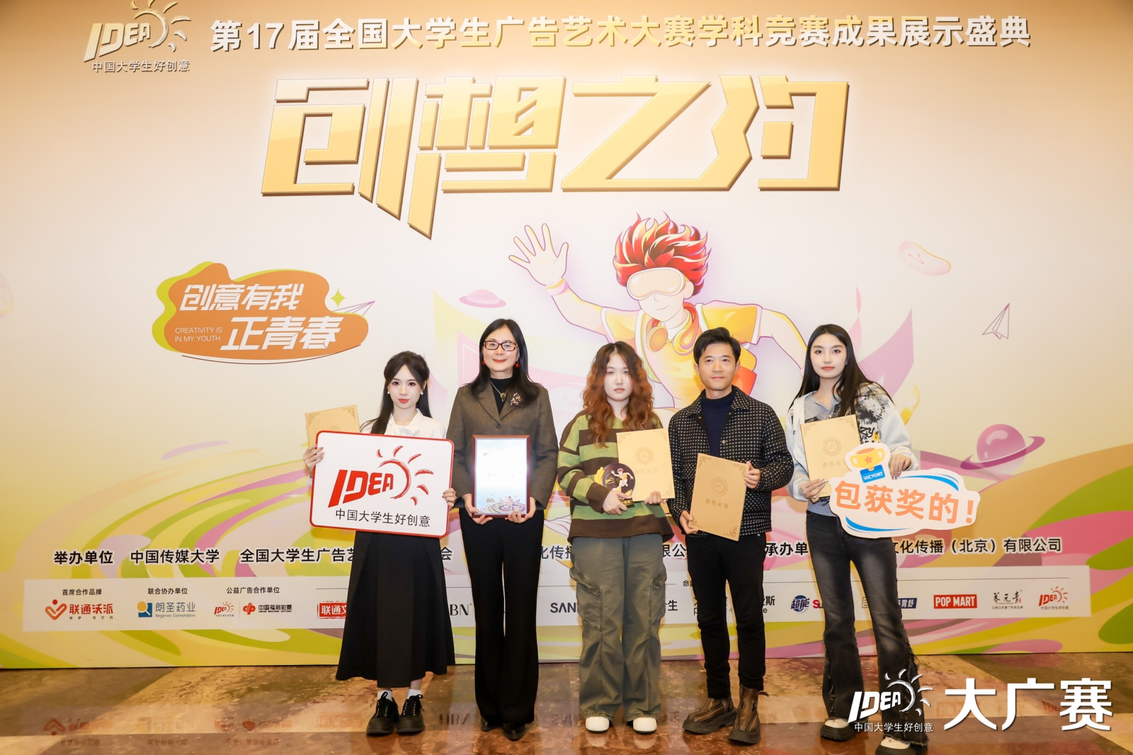12月6日,第17届全国大学生广告艺术大赛全国颁奖典礼在北京政协礼堂举行。今年适逢大赛二十周年,吸引全国29个赛区、1912所高校的176万名师生参与,征集作品超58万件,经多轮评选,最终产生获奖作品约七千件。bat365官网学子在专业教师指导下表现突出,荣获全国奖项43项,其中一等奖1项、二等奖3项、三等奖10项、优秀奖29项。bat365官网荣获“优秀院校”,艺术学院沈正中副教授获评“全国优秀指导教师”。