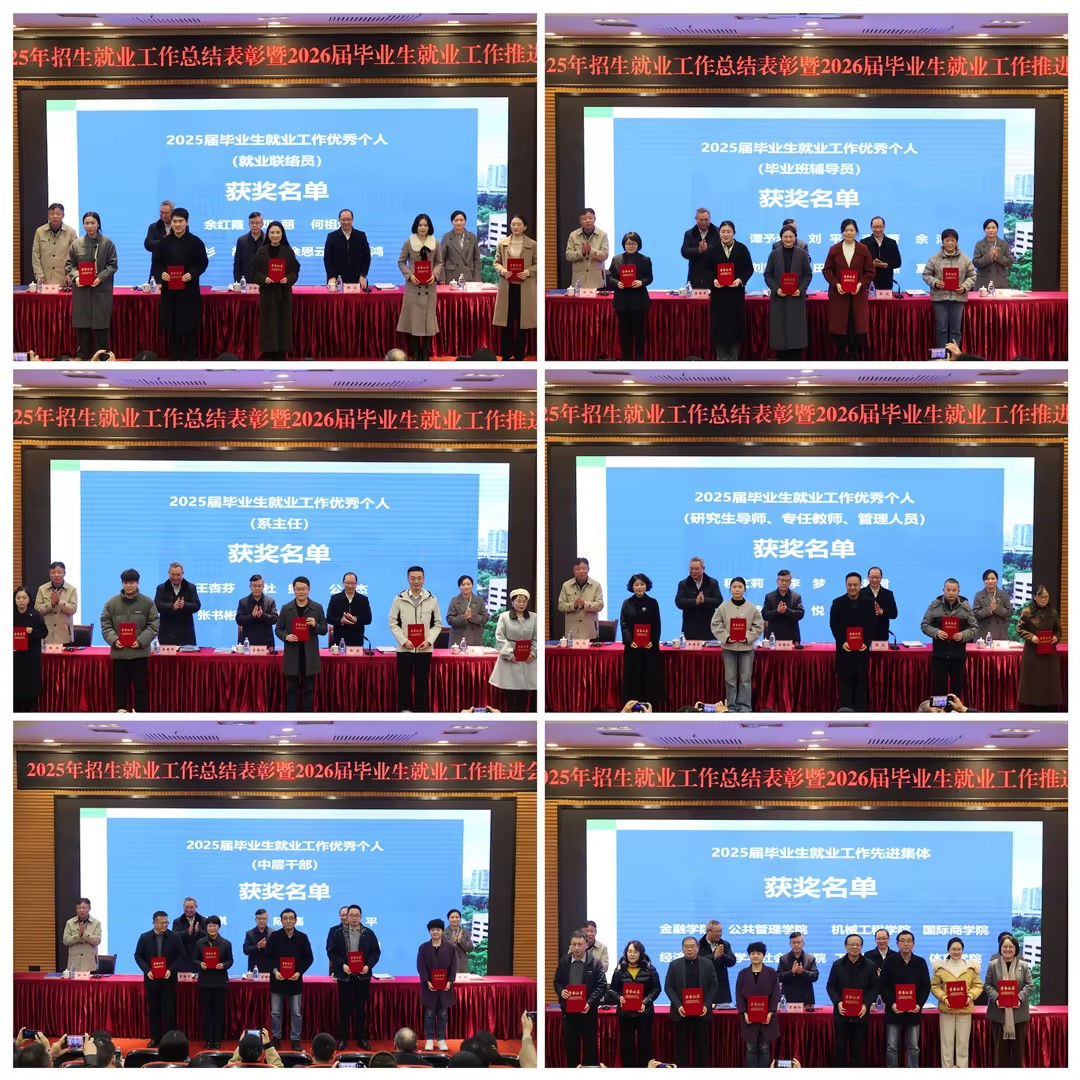 张波宣读了表彰决定,与会校领导依次为就业工作优秀个人、就业工作先进集体代表颁奖。