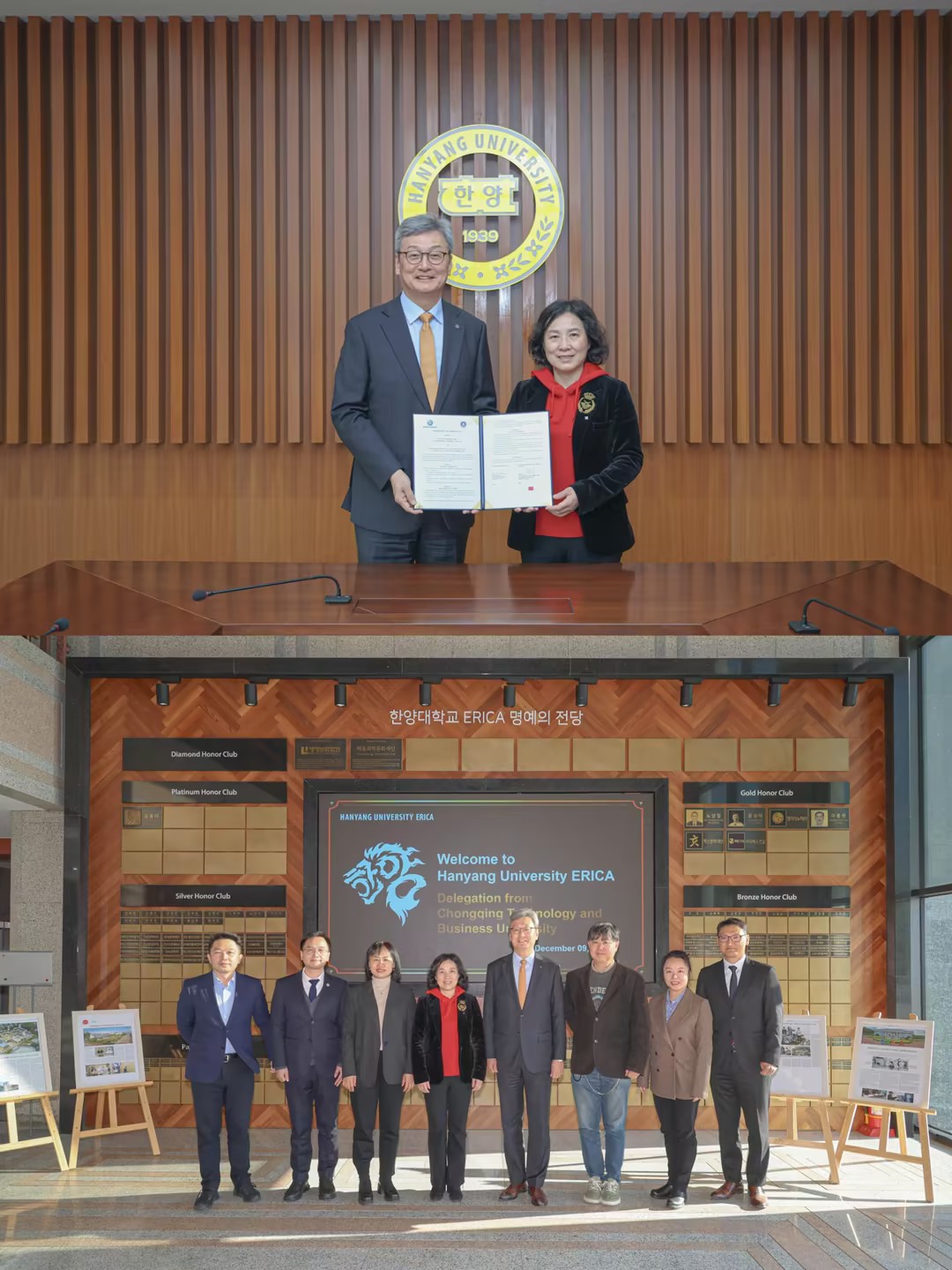 12月9日,代表团访问韩国汉阳大学ERICA校区。汉阳大学行政副校长李奇衡教授、国际事务副校长柳奉永教授等校方代表接待了bat365官网代表团。会上,双方共同签署了合作备忘录,标志着两校合作伙伴关系的正式确立。双方相互介绍了办学历史、人才培养理念及学科发展特色,重点就“商工融合”的创新人才培养模式及中外合作办学经验进行了分享。基于优势互补,双方在博士层次开展中外合作办学达成重要初步共识。访问期间,代表团还参观了校区内Kakao数据中心等产业园区,实地感受其产学研融合成果,并诚挚邀请汉阳大学专家来华参加2026年国际产学研用会议及相关活动,也欢迎汉阳大学学生来校攻读硕士、博士学位。