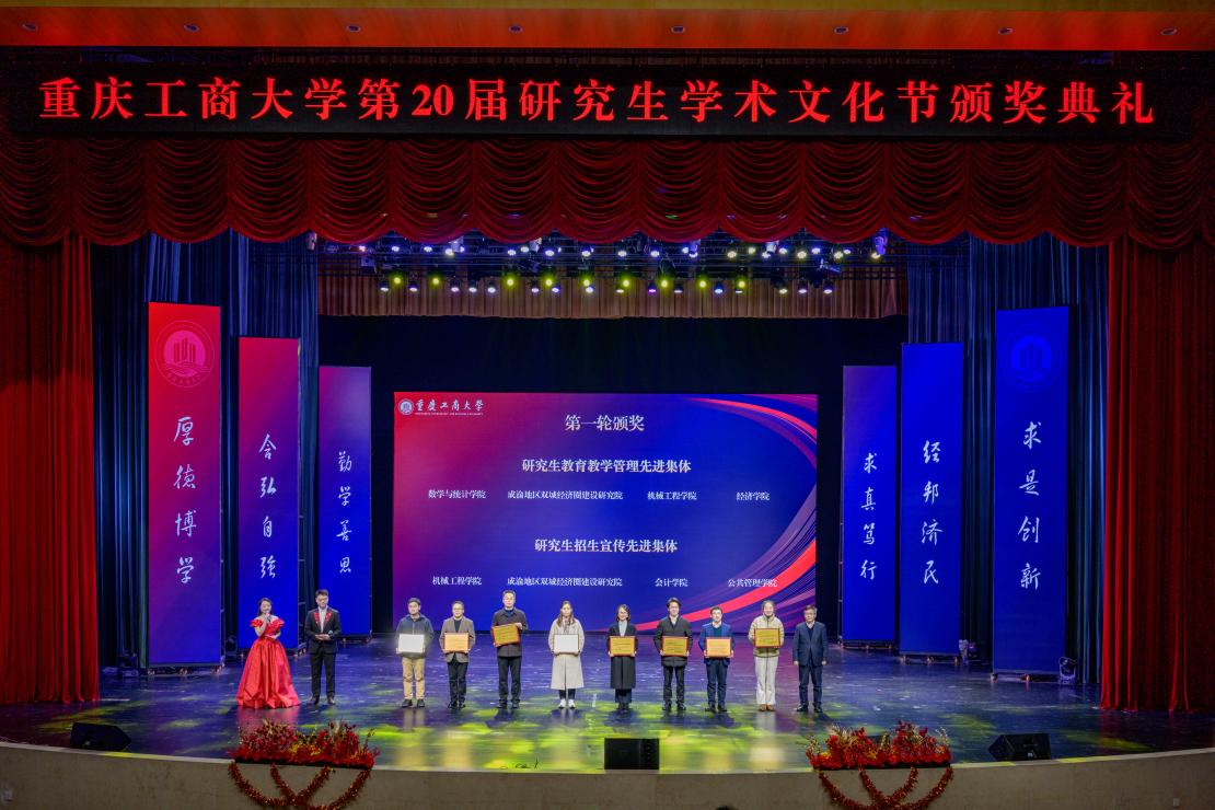 12月26日,bat365中文官方网站第20届研究生学术文化节颁奖典礼在学校剧场举行。学校党委书记曾维伦,党委常委、副校长李国军,党委常委、纪委书记、重庆市监委驻学校监察专员张海燕,党委常委、副校长任毅、田双全出席典礼,部分国家级人才代表,职能部门负责人,研究生培养单位负责人及师生代表参加典礼。