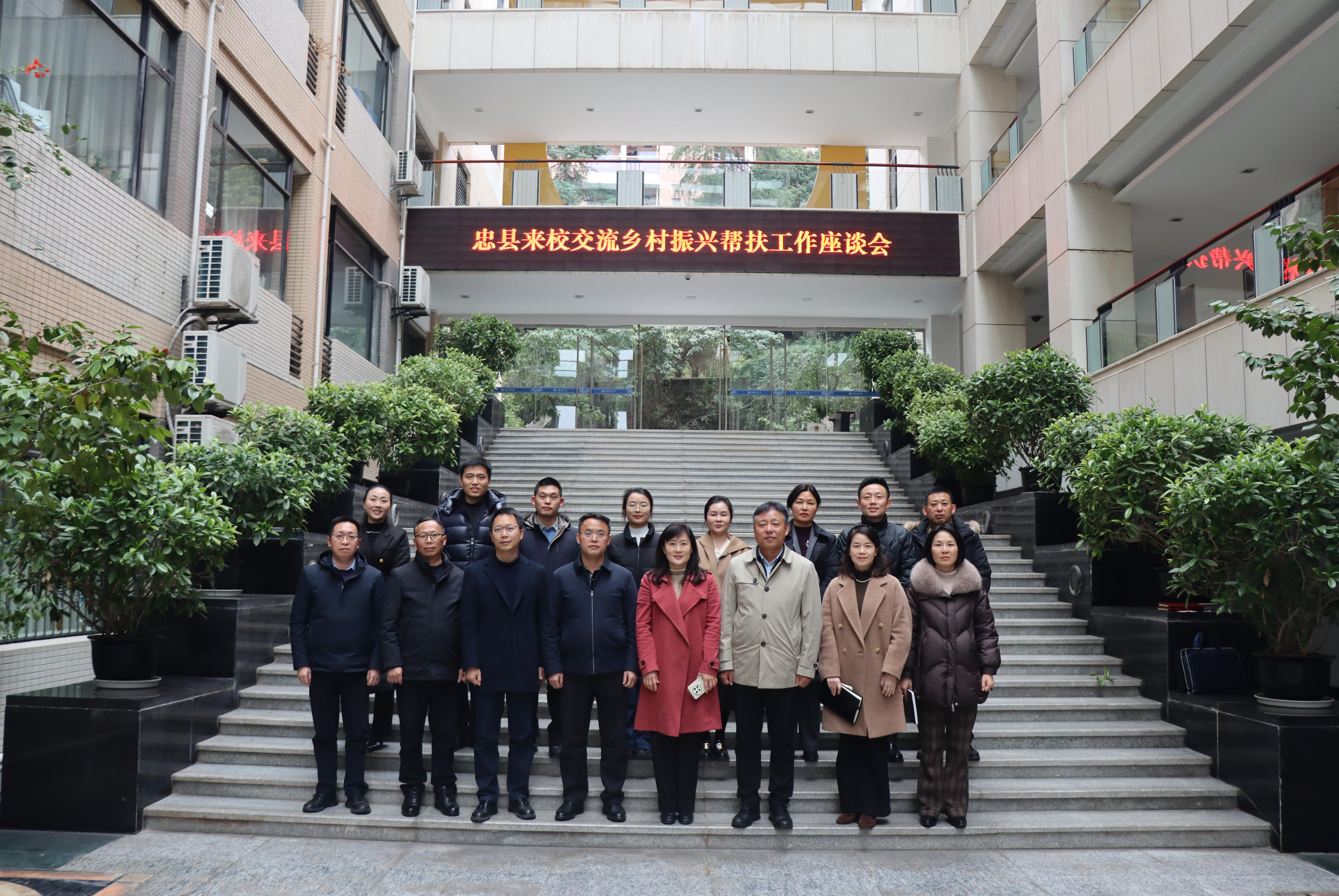 1月23日下午,忠县纪委书记潘仕军、市纪委监委驻市国资委纪检监察组二室副主任、市纪委监委帮扶集团驻磨子土家族乡工作队副队长樊海涛一行来到学校进行了乡村振兴帮扶工作座谈。学校党委常委、纪委书记张海燕,党委常委、副校长杨柏参加会面交流。杨柏主持会议。