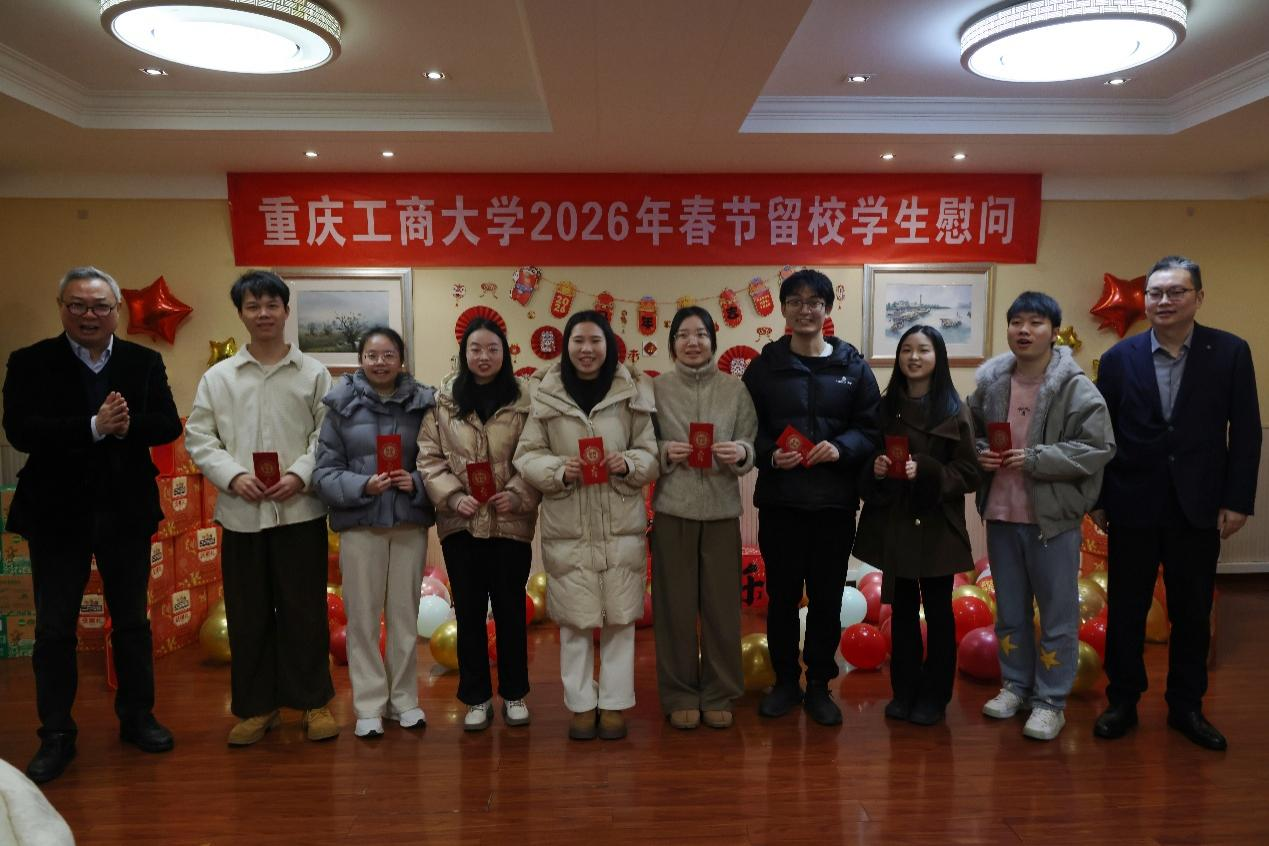 蒋云芳代表重庆市教委向留校学生致以亲切问候和新春祝福。她悉心询问了留校学生的假期安排、学习生活和就业情况以及遇到的困难,并勉励同学们继续保持学习的热情,合理规划假期,筑牢安全意识。同时要保持与家人的密切联系,遇到困难及时联系学校,在学校过一个温馨而有意义的春节。同时,她向假期坚守工作岗位的教职员工致以亲切问候和衷心感谢,并祝愿全体师生在新的一年里一马当先、万马奔腾,砥砺奋进续新篇。与会领导与留校学生亲切交谈,并为同学们送上了慰问金。