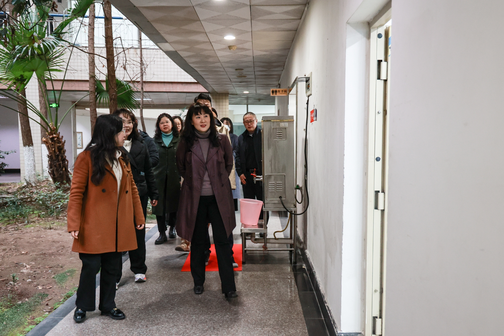 校长温涛,党委常委、副校长杨柏一行前往茶园校区进行了全面细致的检查。温涛一行检查了宏智楼的教室、教师休息室、体艺馆、校内卫生所,详细了解教学整体布局、实验设施配备、生活服务保障及校园安全管理系统运行等情况,并听取相关部门负责人关于开学工作的汇报。温涛强调,茶园校区要在校园环境营造、教学设施维护、后勤服务保障等各方面重视细节。各职能部门要强化协同联动,主动担当作为,全力为学生营造优良的学习生活环境,为学校高质量发展提供坚实保障。