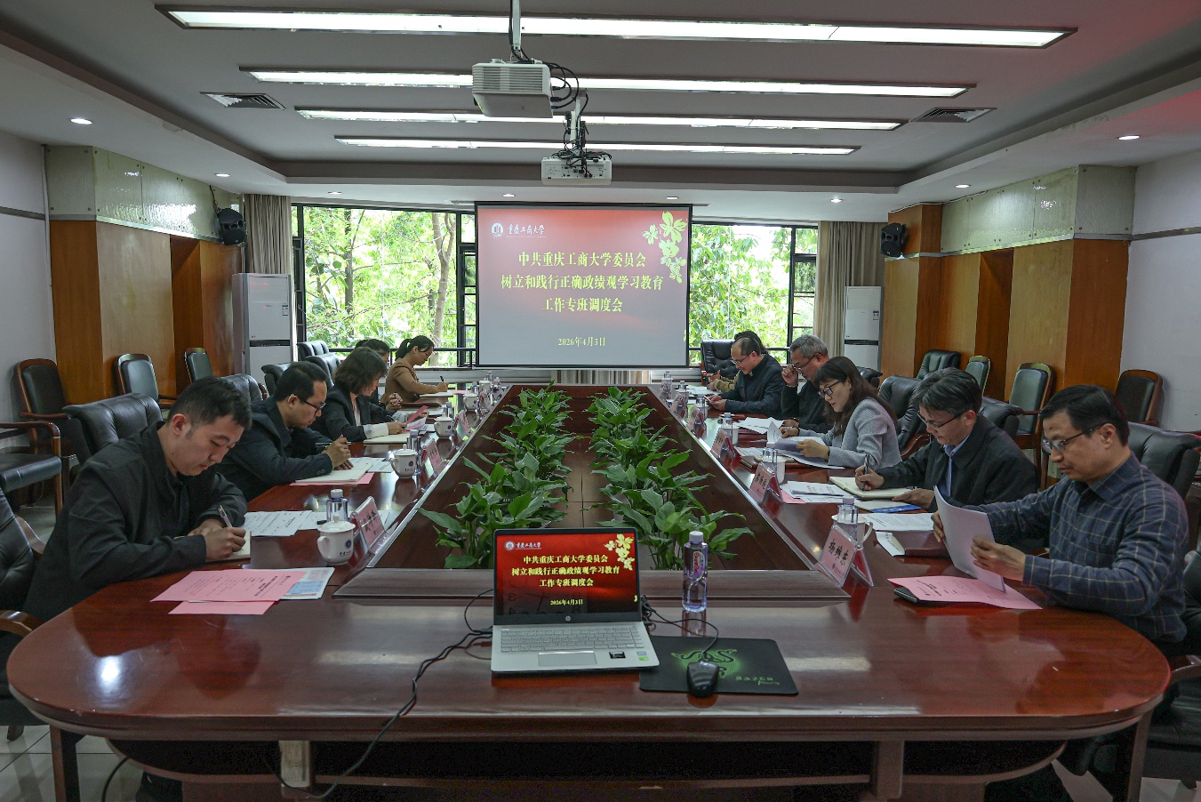 4月3日下午,学校树立和践行正确政绩观学习教育工作专班召开会议,调度工作进展情况,研究安排近期重点任务。工作专班成员参加会议,党委常委、副校长李国军,党委常委、纪委书记、重庆市监委驻学校监察专员张海燕作讲话。