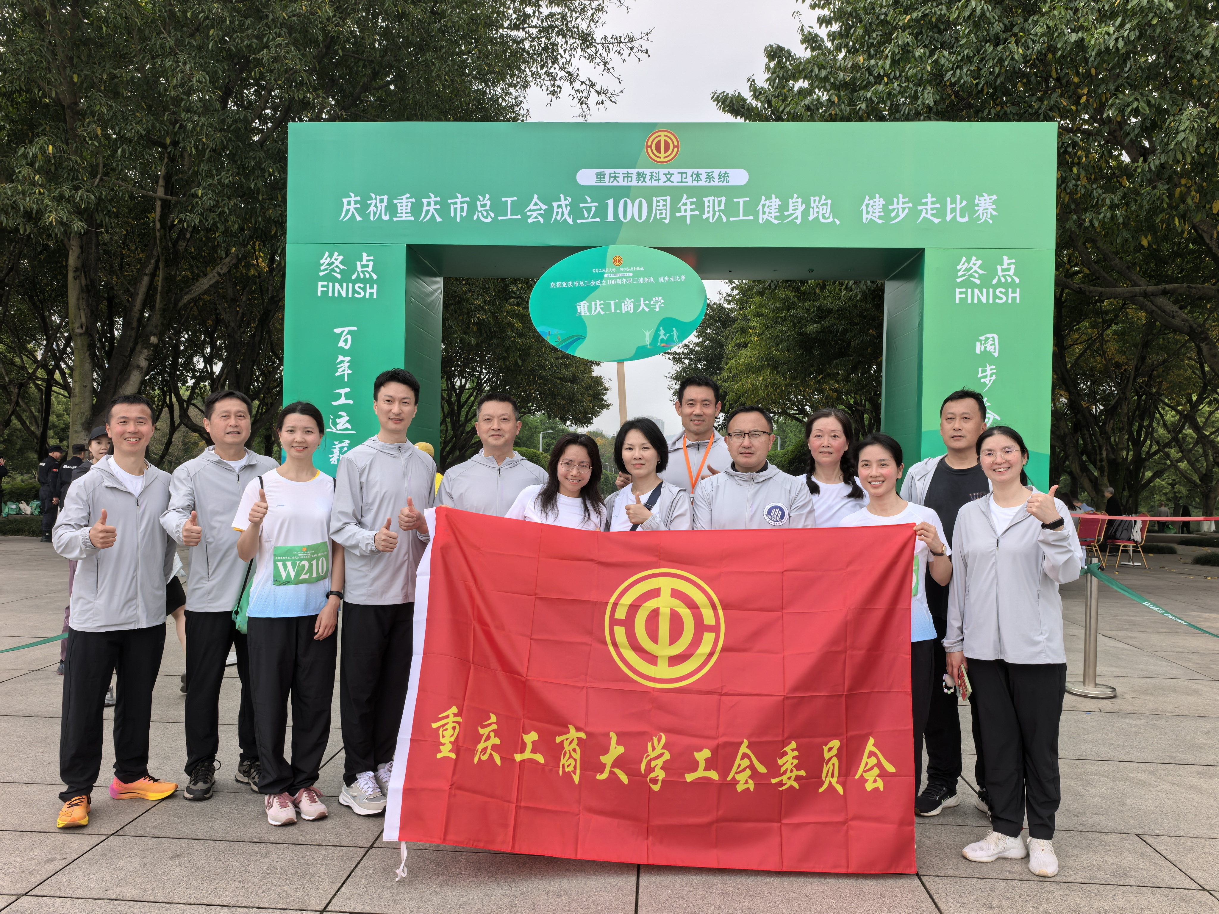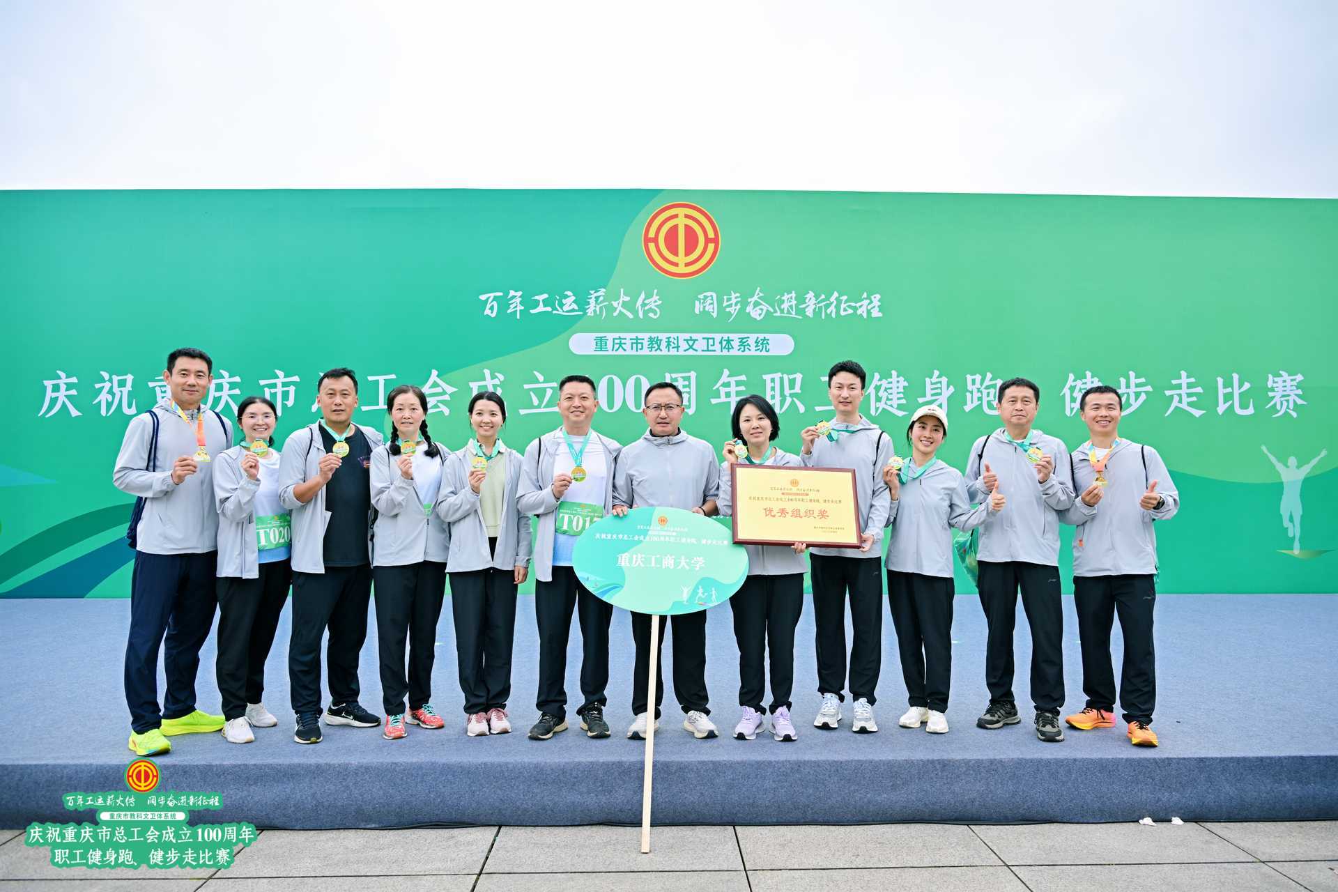 春和景明,逐梦前行;百年工运,薪火永续。4月15日,由重庆市教科文卫体工会主办的“百年工运薪火传 阔步奋进新征程”庆祝重庆市总工会成立100周年职工健身跑、健步走比赛在重庆两江新区中央公园鸣枪开赛,bat365中文官方网站代表队表现突出,荣获比赛“优秀组织奖”,体育学院工会于晓东获男子组第三名,机关工会周良勇获男子组第六名。