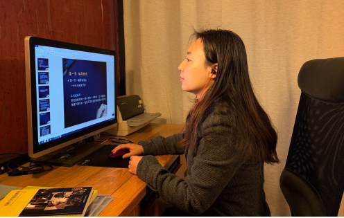 黄薇老师:第一天上课使用的网络直播平台是ZOOM,这个平台可以展示视频、音频、文字,功能非常齐全,比较适合用于影视课程的多种类资料分享的课堂。这堂课首先介绍了影视编导课程的意义和几大内容板块。和学生屏幕共享了PPT课件,学生可以在课件上实时做笔录,也可以在聊天框里提出问题。课堂上还一起观看了视频资料的介绍,效果流畅不卡顿。在讨论环节,学生可以点击“举手”按钮通过音频或者文字作答。课程中,教师能够及时了解学生学习动态,以及是否音视频流畅。学生反馈在网课和在现实的课堂效果一样。
