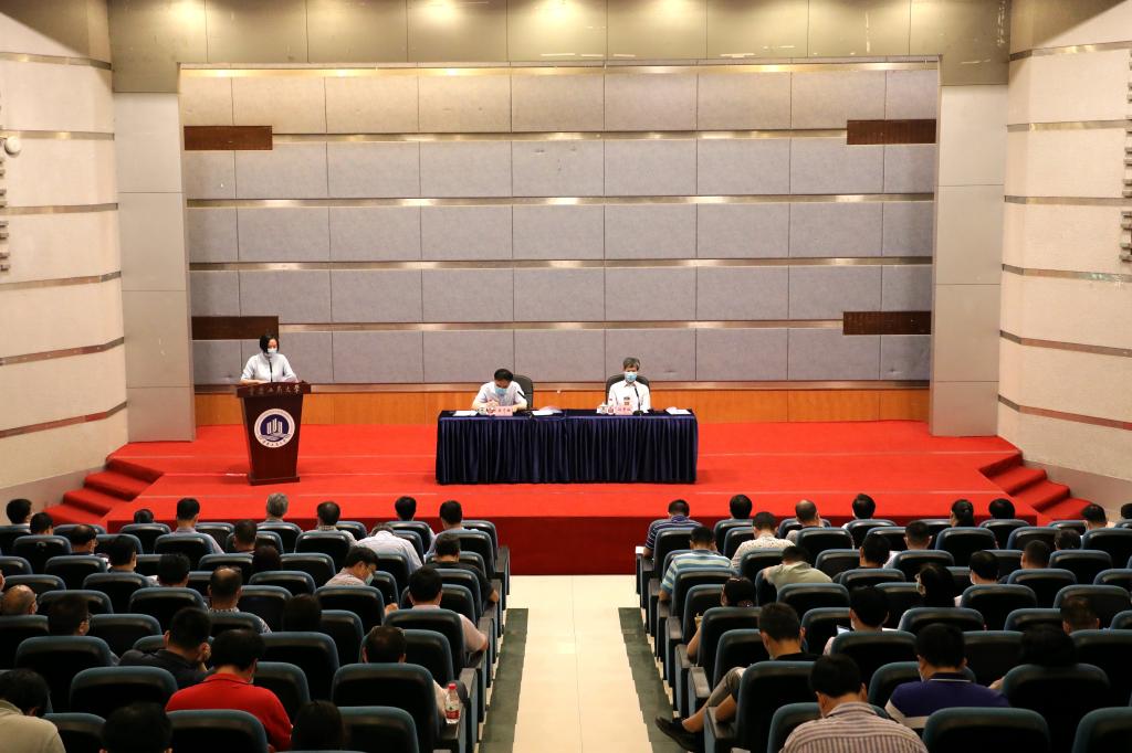 5月8日下午,按照市委统一部署,bat365中文官方网站市管领导班子和领导干部2019年度考核总结述职和民主测评会在博智楼7100学术报告厅举行。全体在家校领导、全体中层干部、具有高级专业技术职务的教师代表、教代会和工会代表等240余人参会。市考核办和市委教育工委联络员余冠军同志列席了会议。大会由学校党委书记李志雄主持。