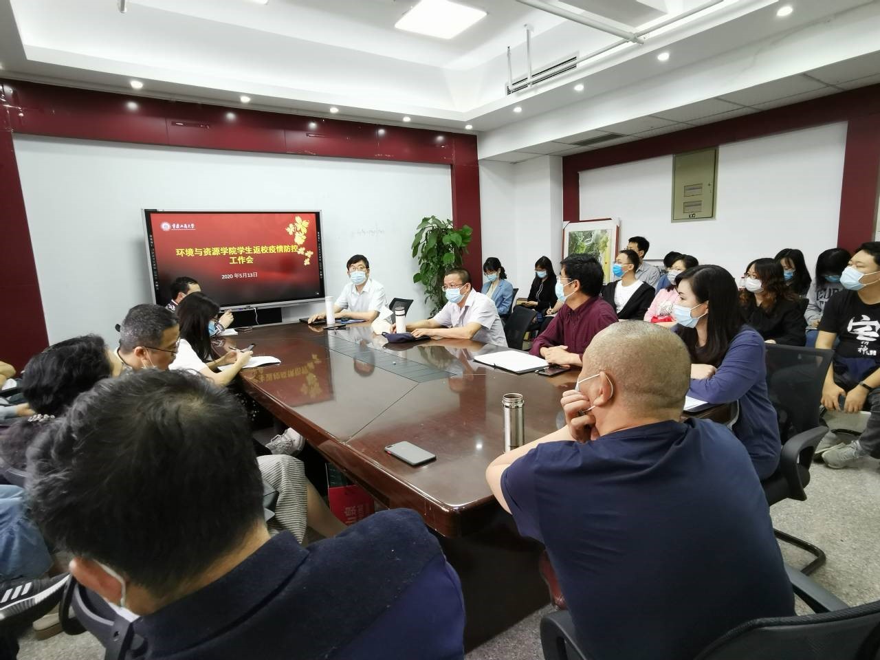 为全面打赢疫情防控阻击战,全力保障返校学生正常教学和生活,5月13日上午,环境与资源学院学生返校疫情防控深入推进会顺利举行。学院王竹青书记、傅敏院长、吴佑波副书记、李宁副院长、王星敏副院长,综合办、学团办、实验室全体人员参加了会议。会议由王星敏主持。