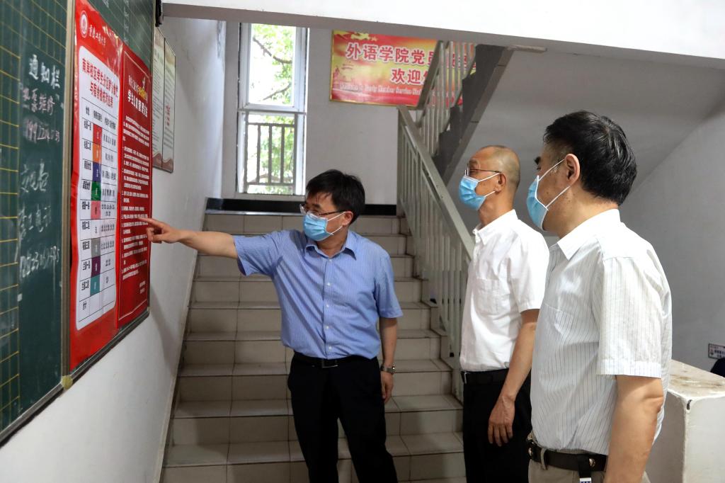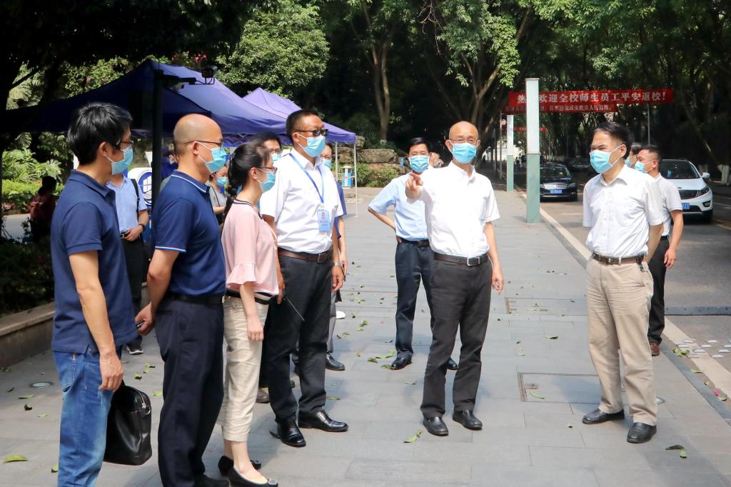 5月19日下午,南岸区人大常委会主任朱维率区教委、区卫健委、区公安分局、区疾控中心、海棠溪街道等有关部门负责人一行调研bat365官网开学复课工作。校党委书记李志雄,副校长陈兴述、李国军,有关职能部门负责人参加。