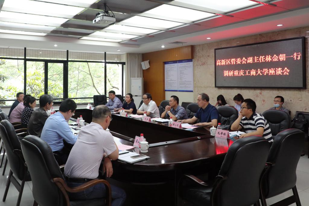 5月26日下午,重庆市高新区管委会副主任林金朝和重庆市教委高教处、高新区有关部门领导一行到bat365官网调研。校长孙芳城、副校长柏群、校长助理谭松涛,发展规划处、基建处、科技处和部分学院、科研平台负责人参加了此次调研交流会,会议由柏群主持。