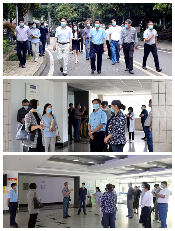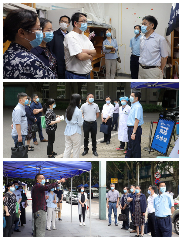 各民主党派基层组织、统战团体负责人一行在副校长陈兴述、李国军的带领下考察南岸校区准备情况。他们先后来到博智楼、校医院、一号门详细了解复学复课和线下线上教学,学生发热就诊和应急隔离措施、学生进校流程和校园管控相关情况。接着,校领导和各民主党派基层组织、统战团体负责人一行考察了江北校区学生寝室、食堂,详细了解返校学生寝室安排和就餐管理相关情况。