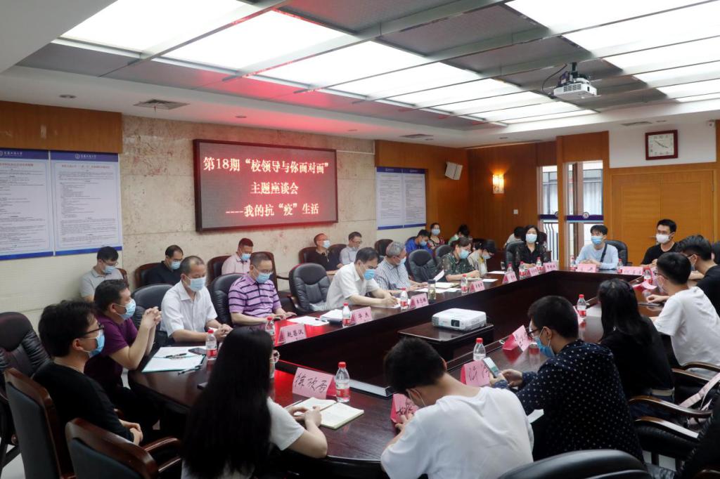 6月12日下午,bat365官网在厚德楼3019会议室举办了以“我的抗‘疫’故事”为主题的第18期“校领导与你面对面”主题座谈会。校党委书记李志雄,副校长李国军,党委宣传部、学生处、研究生院、教务处、后勤处、通识学院等相关职能部门负责人,教师代表,部分学生代表参加。会议由李国军主持。