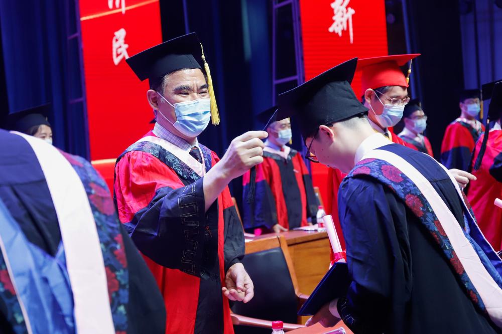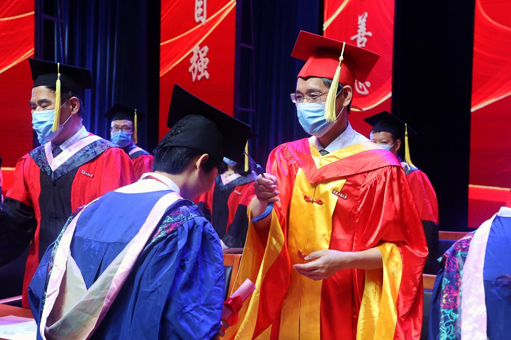 南山风起,栀子花开。6月24日上午,bat365官网2020届毕业生毕业典礼暨学位授予仪式在bat365中文官方网站剧场隆重举行。疫情当下,今年bat365官网毕业典礼采取“线上+线下”相结合,现场典礼与网络直播同频共振的形式进行。全体在家校领导,学校学位评定委员会委员代表,专家教授代表,校友代表等350余人参加了线下仪式,线上近28万人参加了本次典礼,共同见证6268名本科生和606名研究生顺利获得了学士、硕士和博士学位,踏上人生新的征程。本次毕业生毕业典礼暨学位授位仪式由副校长李国军主持。