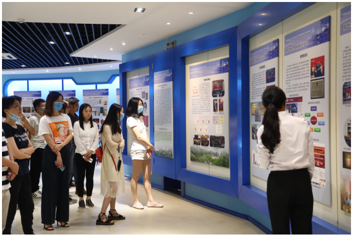 随后,在解说员带领下,新进教职工分别参观了领导关怀、历史沿革、党建思政、教育教学、学科建设、科学研究、开放办学、校园文化、校友园等展区。解说员声情并茂的解说引起了大家极大的兴趣,纷纷驻足观看,合影留念。