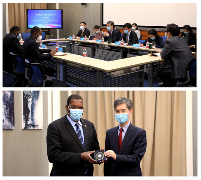 孙芳城代表学校欢迎大使一行到访,简要介绍了学校的基本情况,回顾了过去学校与乍得开展的教育国际交流合作,并希望在中非合作不断加深的背景下,能够得到大使先生的大力支持,与乍得开展更多的教育合作与交流。