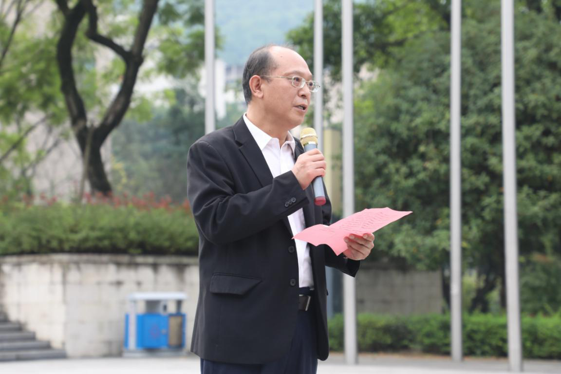 王建明发表讲话。他谈到今年以来,面对突如其来的新冠肺炎疫情,以习近平同志为核心的党中央团结带领全国各族人民,万众一心、众志成城,进行了惊心动魄的抗击新冠肺炎疫情人民战争,取得了重大战略成果。习近平总书记指出,青年一代有理想、有担当,国家就有前途,民族就有希望,实现中华民族伟大复兴就有源源不断的强大力量。重工商大历来具有浓厚的家国情怀传统,始终承载着民族复兴重任,在喜迎国庆之际,希望重工商大学子以爱国、报国为己任,树立远大理想,常怀报国之志,荣校爱校。